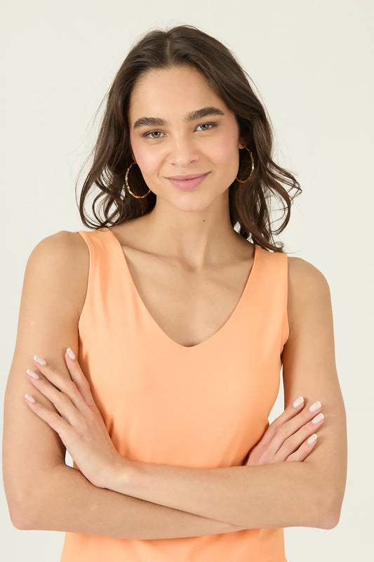 Polera Mujer Sin Mangas Escote En V Naranja