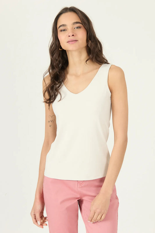 Polera Mujer Sin Mangas Escote En V Beige