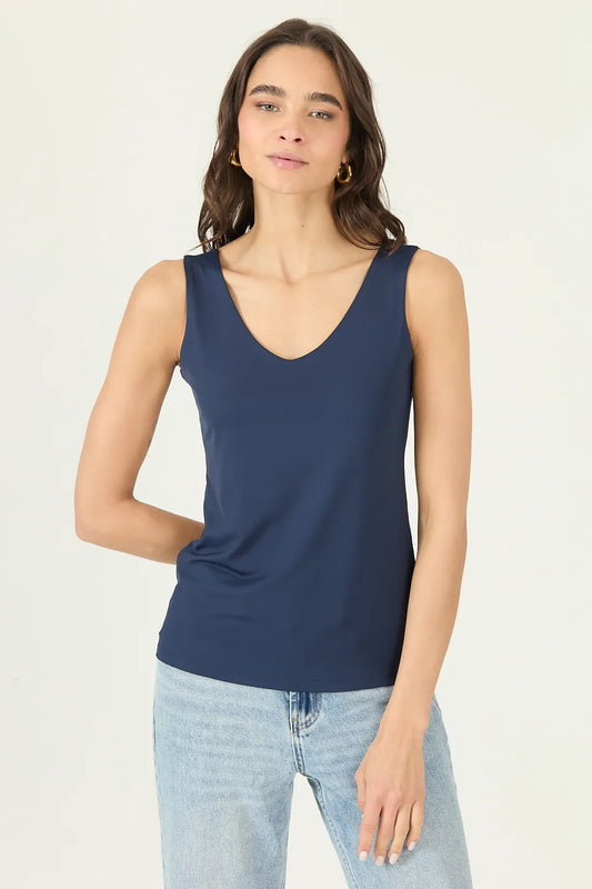 Polera Mujer Sin Mangas Escote En V Azul Marino