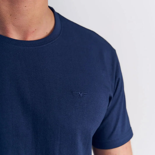 Polera Hombre Manga Corta Básica Logo Embroidery Azul