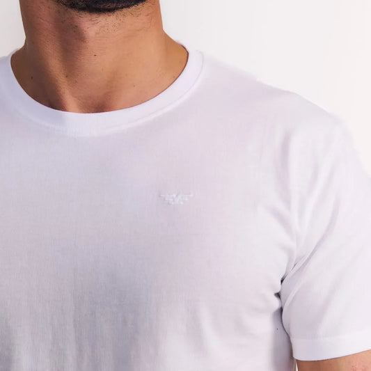 Polera Hombre Manga Corta Básica Logo Embroider Blanco