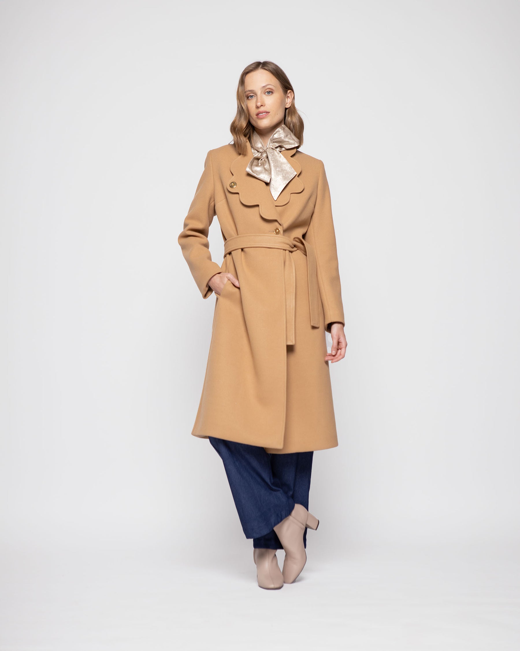 El abrigo Narciso Camel de Ludovica te brinda sofisticación y funcionalidad en una sola prenda. Confeccionado en paño de alta calidad, su diseño clásico en tono camel destaca tu estilo refinado durante el otoño e invierno. Detalles distintivos como botones esmaltados y un lazo ajustable en la cintura realzan su elegancia exclusiva.