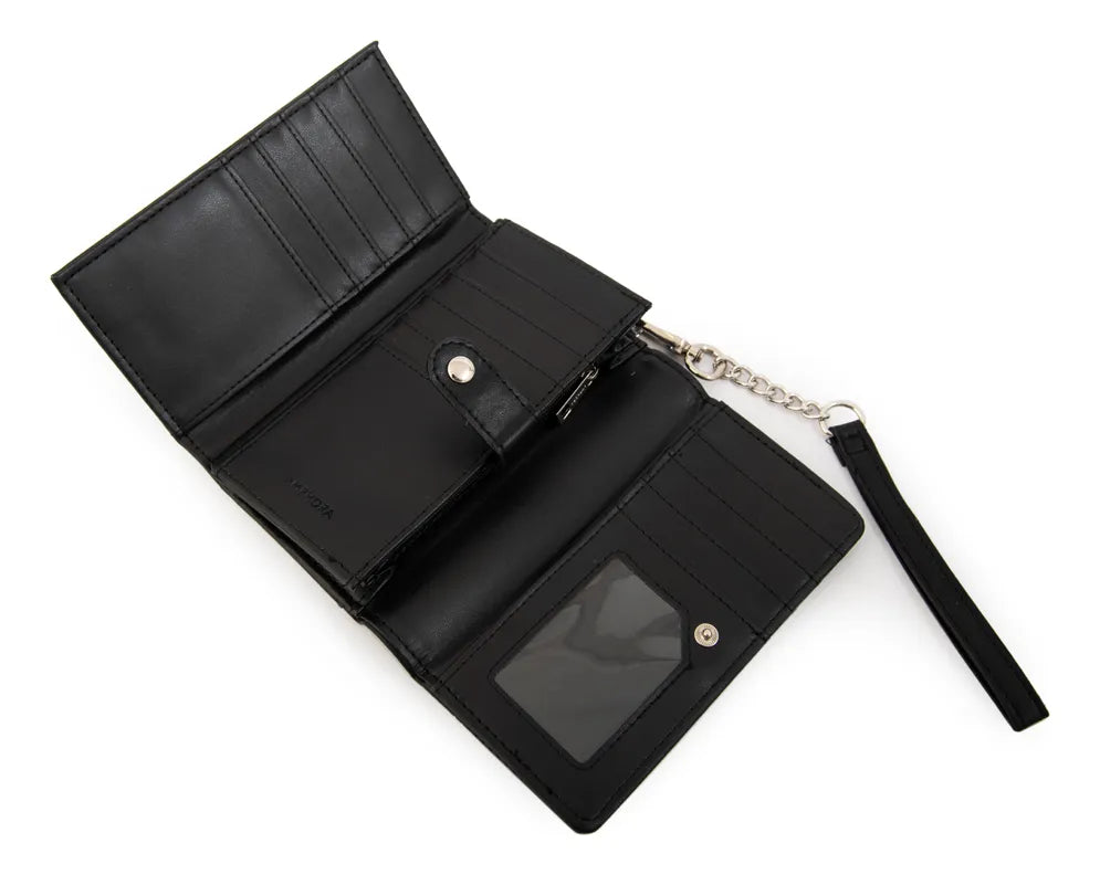 Elegante y práctica, la billetera mediana Guinea en negro es perfecta para el uso diario. Fabricada en ecocuero liso con herrajes niquelados, ofrece una estructura compacta de 10 cm de alto por 16 cm de ancho. Su cierre con broche garantiza que tus tarjetas y billetes se mantengan seguros y organizados. Un accesorio imprescindible que combina estilo y funcionalidad.