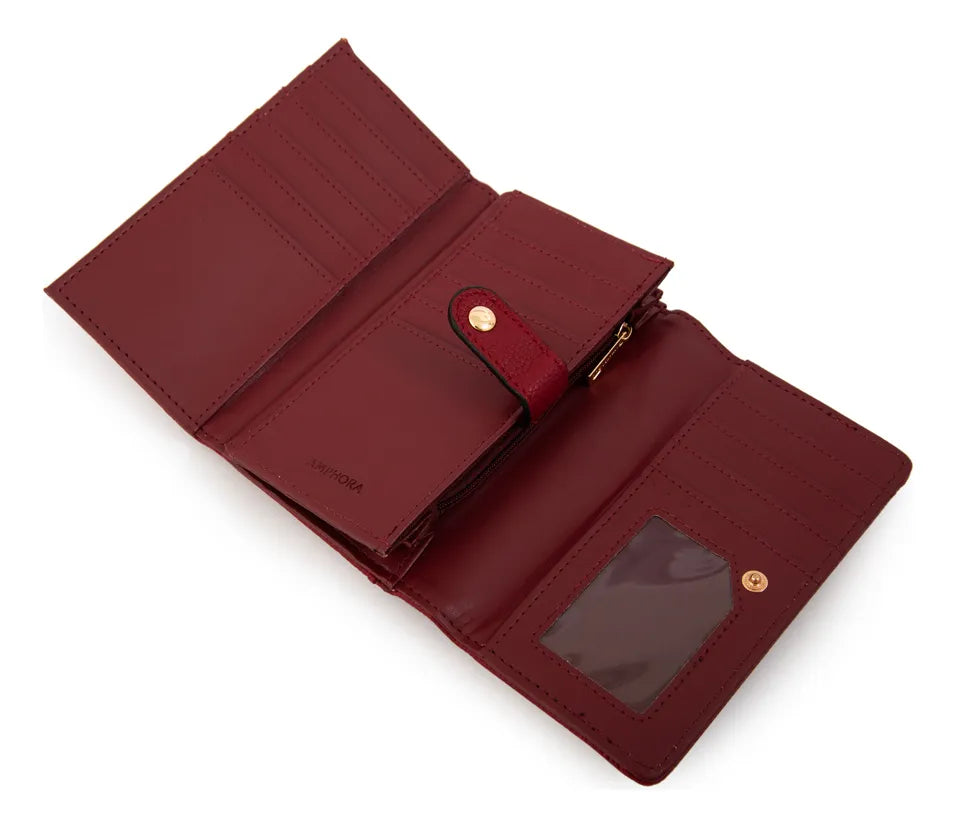 Destaca con estilo y mantén todo en orden. La billetera Lizet roja mediana combina funcionalidad con un diseño único. Fabricada en ecocuero y con cierre magnético, ofrece comodidad y elegancia en un solo accesorio.