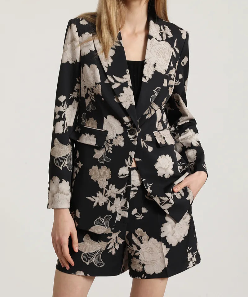Blazer Mujer Entallado Estampado Negro