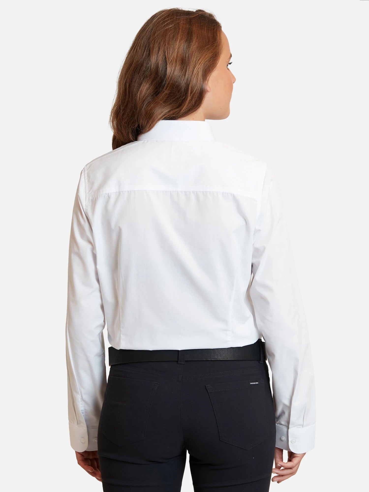 Esta blusa escolar es perfecta para el uniforme de tu hija. Hecha de tela blanca de alta calidad, es resistente y duradera para el uso diario. El diseño clásico es ideal para un look elegante y apropiado en el entorno escolar. ¡Haz que tu hija se sienta cómoda y con estilo!