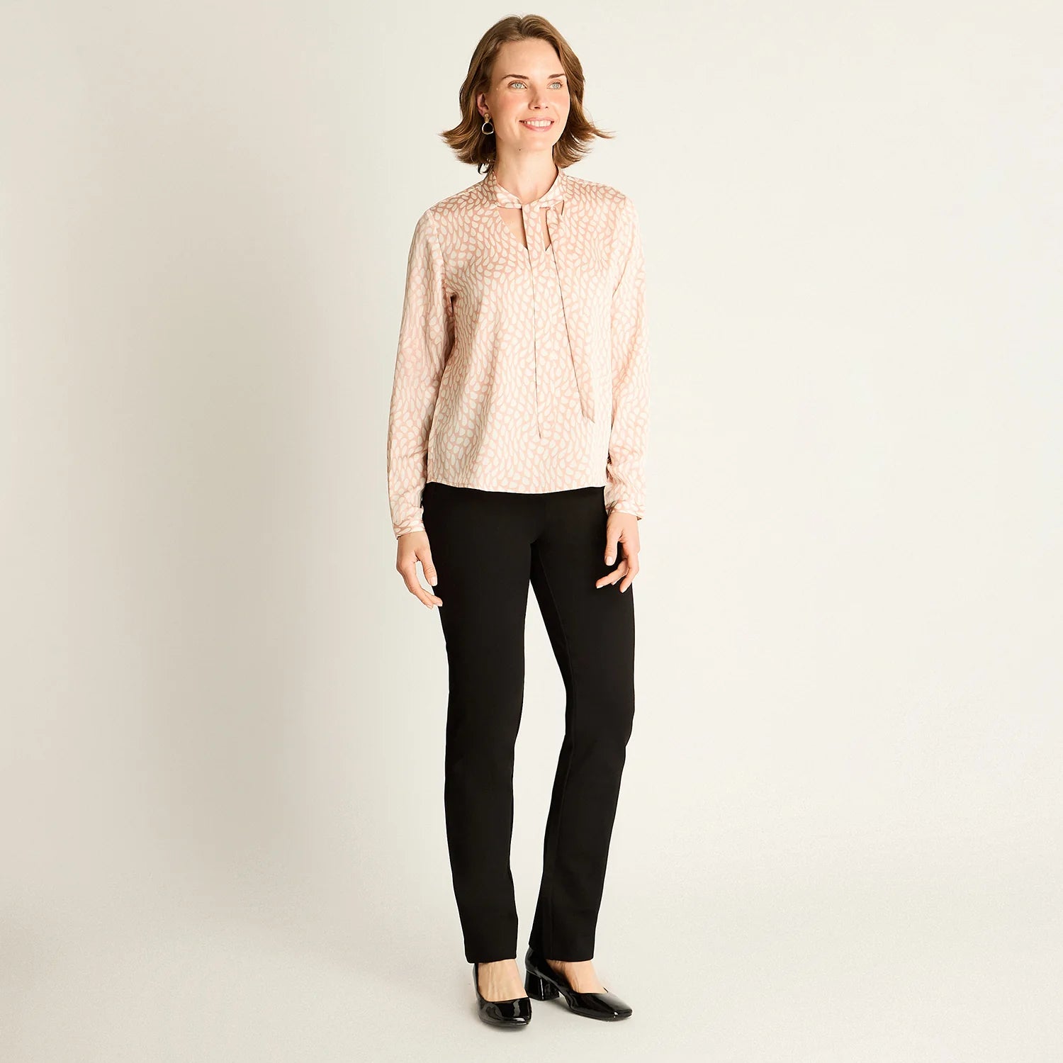 Dale un toque femenino y profesional a tu guardarropa con esta blusa rosada con lazo de Lorenzo di Pontti. Su delicado estampado geométrico aporta textura, mientras que el cuello redondeado con lazo largo añade elegancia sutil. Confeccionada en 100% poliéster, ofrece comodidad y un calce normal que no limita tus movimientos. Sus mangas largas con puños simples la hacen ideal para combinar con jeans o pantalones formales, perfecta para el trabajo, reuniones o cualquier ocasión donde quieras lucir impecable y sentirte cómoda.