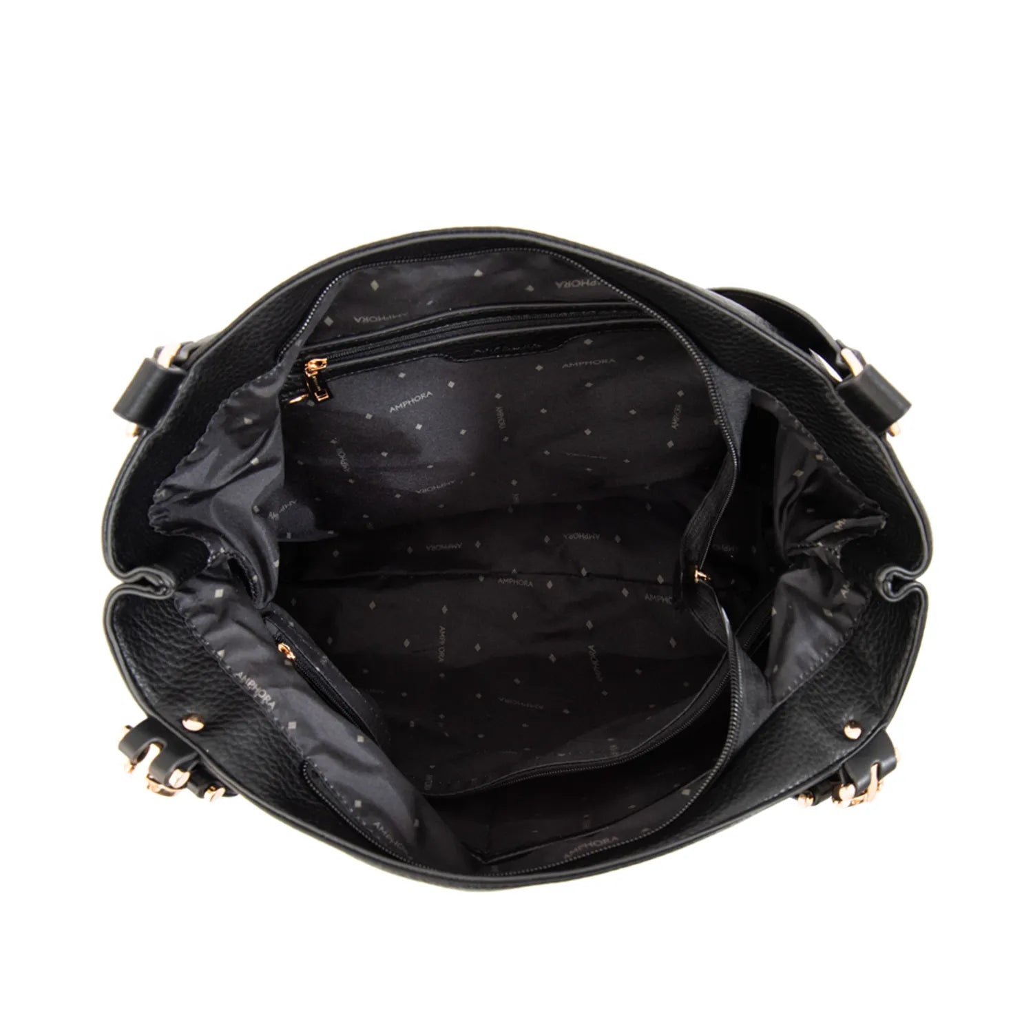 Esta cartera Amphora en negro es tu nuevo esencial con personalidad. Combina un diseño clásico con toques modernos en cada detalle. Su estructura resistente, doble asa y correa desmontable ofrecen versatilidad y funcionalidad. Fabricada en cuerina texturizada, es ideal tanto para el trabajo como para momentos casuales. Acompáñala con prendas neutras y transforma tu look con un accesorio que destaca por sí solo.