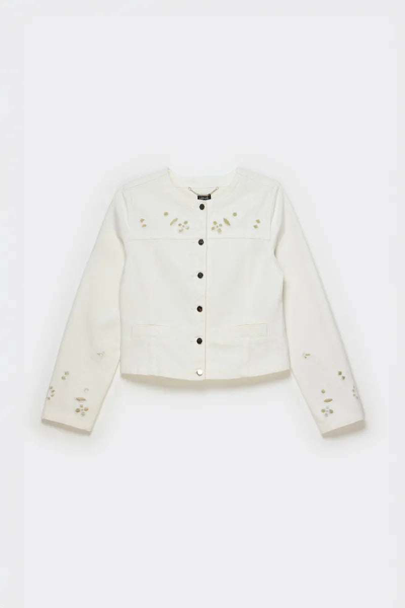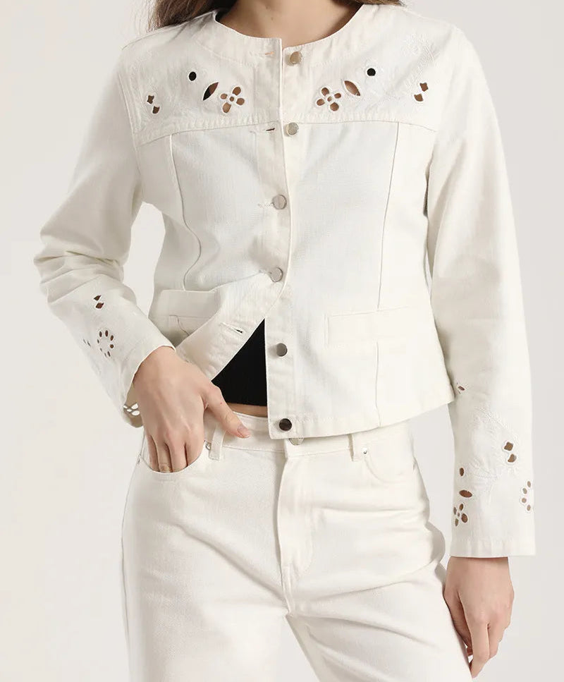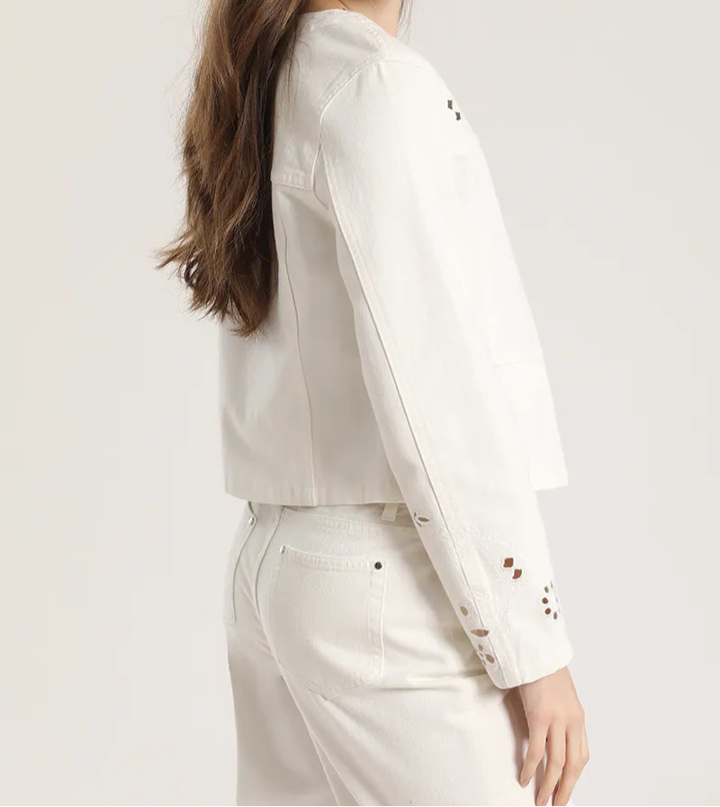 Chaqueta Mujer Con Bordado Perforado Crudo