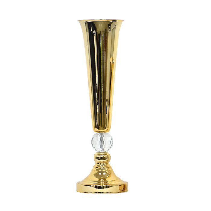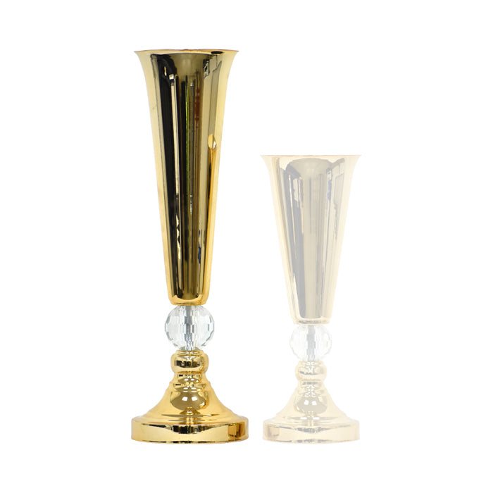 Este florero Gunther XL de 45 cm combina elegancia y modernidad para transformar cualquier espacio. Su acabado metálico dorado y el detalle central de esfera transparente aportan un toque sofisticado, ideal para realzar la decoración de mesas y rincones especiales. Con medidas compactas de 14 cm de ancho y profundidad, añade estilo sin ocupar mucho espacio. Perfecto para quienes buscan un accesorio decorativo que destaque y eleve el estilo del hogar.