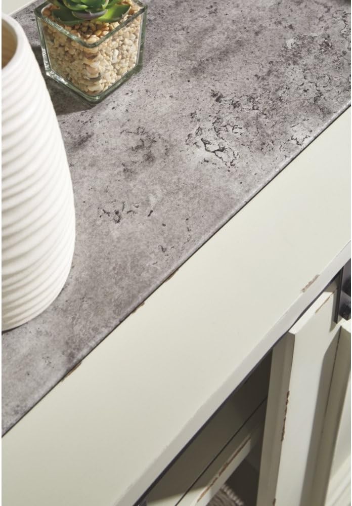 Diseño rústico con funcionalidad moderna. Este archivador está fabricado con chapas, madera maciza y madera de ingeniería, coronado con una superficie de cemento sintético que aporta un toque industrial contemporáneo. Su puerta corredera de granero, herrajes en acabado gris oscuro y detalles en estilo farmhouse hacen de este mueble una pieza tan práctica como decorativa.