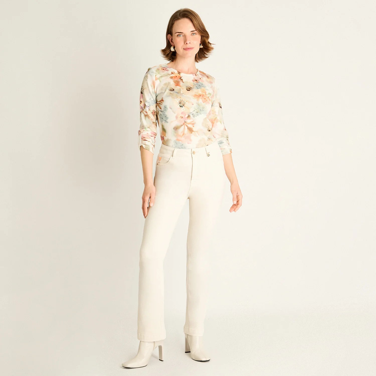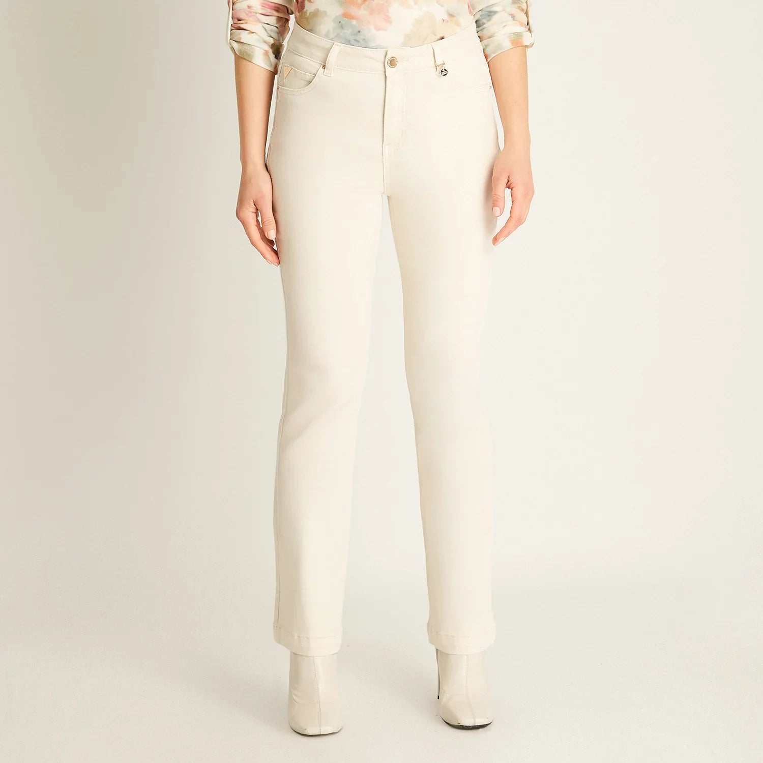 Los Jeans Arena Corte Flare de Lorenzo di Pontti combinan estilo y comodidad para esta primavera. Su tejido de algodón con elastano ofrece elasticidad que se adapta a tu cuerpo manteniendo la forma. El corte flare desde la rodilla realza tu figura y alarga las piernas, mientras que su calce normal garantiza un ajuste favorecedor para distintas siluetas. Con cinco bolsillos clásicos, cierre frontal y presillas, son una prenda versátil y esencial para un look elegante y cómodo todo el día.