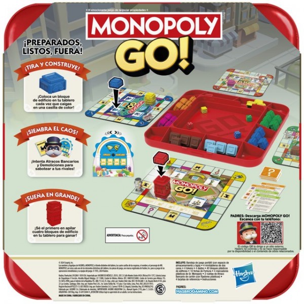 Monopoly GO! trae la emoción del clásico juego digital a tu mesa. Elige tu minitablero y dado, avanza casillas y construye bloques de Monumento para ganar. Usa estrategias como atracar bancos y derribar monumentos para superar a tus rivales. El primero en apilar cuatro bloques de un mismo color será el ganador. Ideal para toda la familia, este juego combina diversión y competencia en cada partida. ¡Prepárate para horas de entretenimiento y desafíos con Monopoly GO!