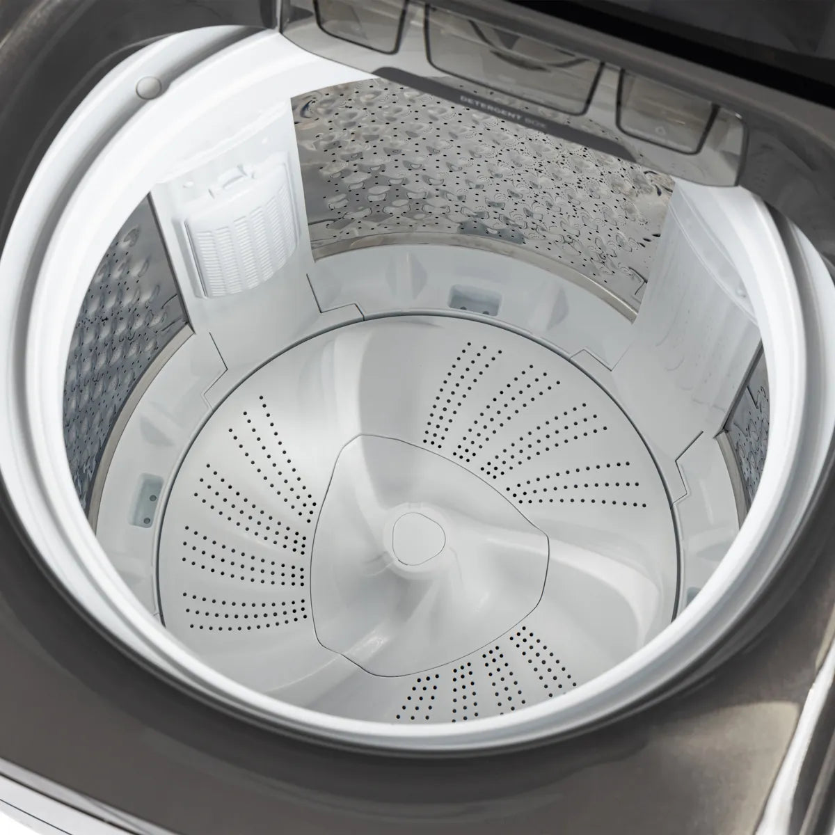 La Lavadora Carga Superior Automática Titanium 16KG combina innovación y eficiencia para cuidar tus prendas. Su sistema One-touch Deep Softner prolonga el efecto del suavizante, manteniendo las fibras suaves. Con tres flujos de agua anti enredos, elimina manchas y evita que la ropa se enrede. El Power Mix Box disuelve mejor el detergente asegurando una limpieza profunda, mientras que Turbo Wash reduce el tiempo de lavado sin sacrificar resultados. Además, cuenta con inicio diferido, filtro para pelusas y bloqueo de seguridad para tu comodidad y tranquilidad. Eficiencia energética clase B y diseño compacto en color titanium.