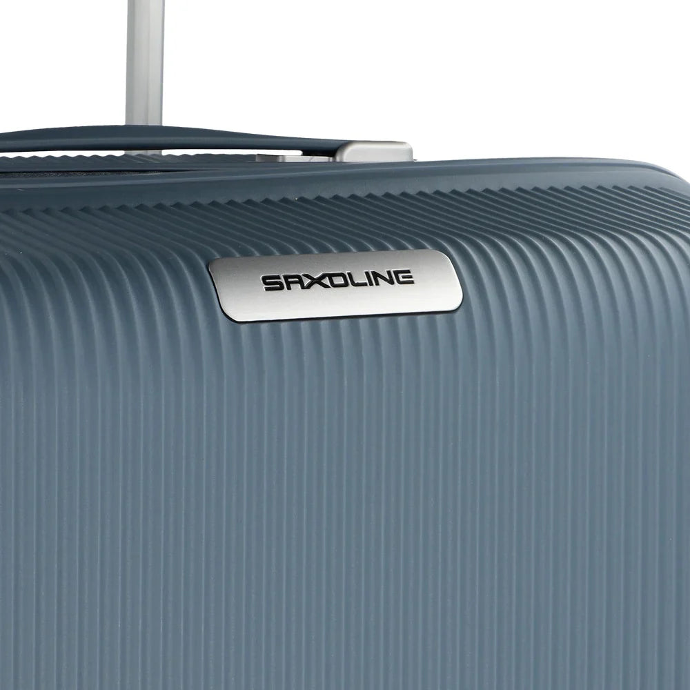 Maleta de viaje de gran capacidad con estructura rígida en polipropileno de alta resistencia. Dimensiones de 75 x 46 x 40 cm con capacidad de 110 litros, ideal para desplazamientos prolongados. Cuenta con sistema spinner de ruedas multidireccionales para mayor maniobrabilidad. Diseño expandible que aumenta su volumen cuando lo necesitas. Peso ligero de 4.2 kg facilita el transporte. Acabado en tono Stone Blue con construcción duradera de la marca Saxoline, garantizando protección óptima de tu equipaje.