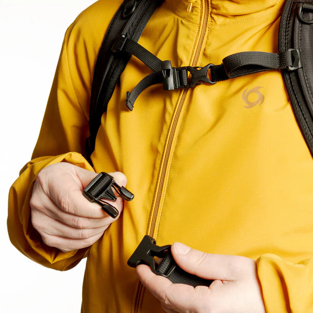 - Cinturón de ajuste pectoral con silbato integrado