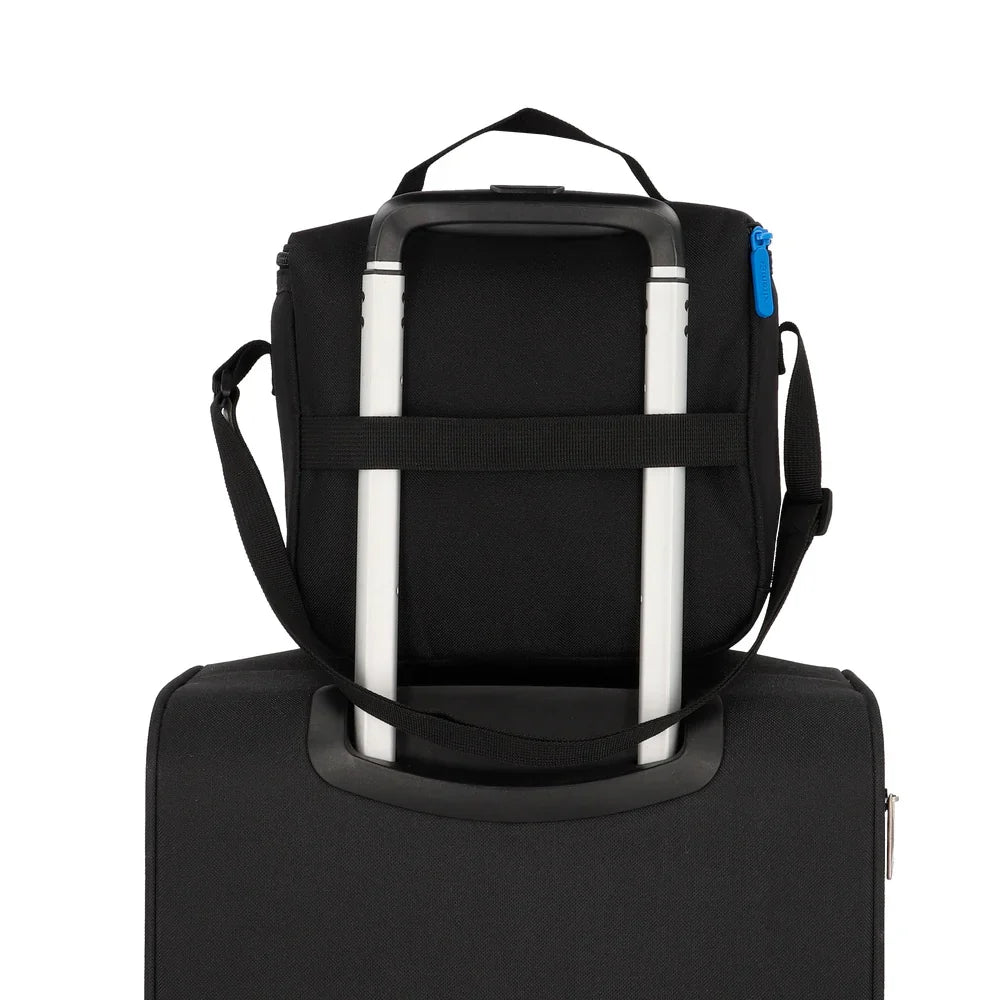 Este set de tres piezas de la marca Xtrem combina funcionalidad y sostenibilidad. La mochila principal de 28 litros cuenta con cierre Kissing Lock, compartimento para botellas y forro fabricado con material reciclado. Dimensiones de 42x31x14 cm con capacidad para documentos tamaño oficio. Incluye lonchera con aislamiento térmico y banda para carro, más estuche complementario. Construcción en poliéster de alta durabilidad en tonos negro-azul. Peso total de 680 gramos, ideal para estudiantes y profesionales que buscan organización práctica sin comprometer el cuidado ambiental.