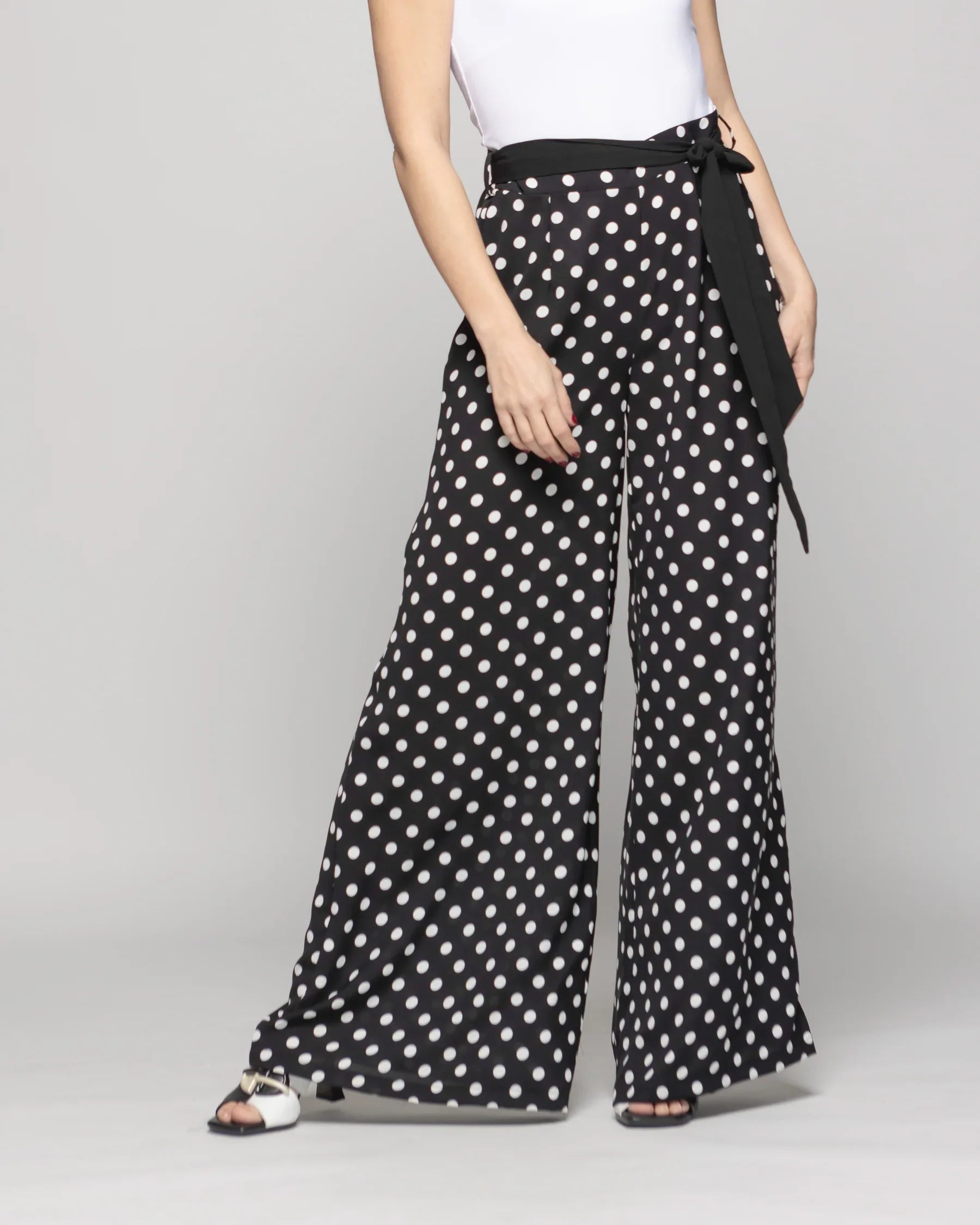 Pantalón Mujer Brionia Palazzo Viscosa Con Lazo Lunares Blancos Negro Ludovica