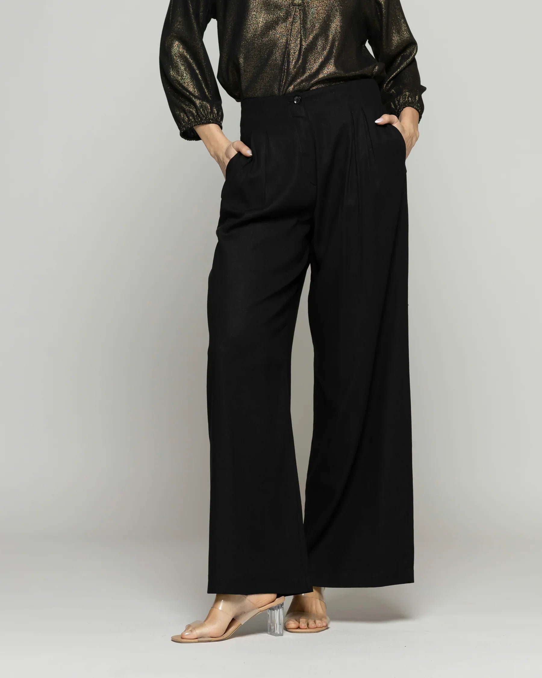 Pantalón Mujer Silene Viscosa Con Pinzas Negro Ludovica