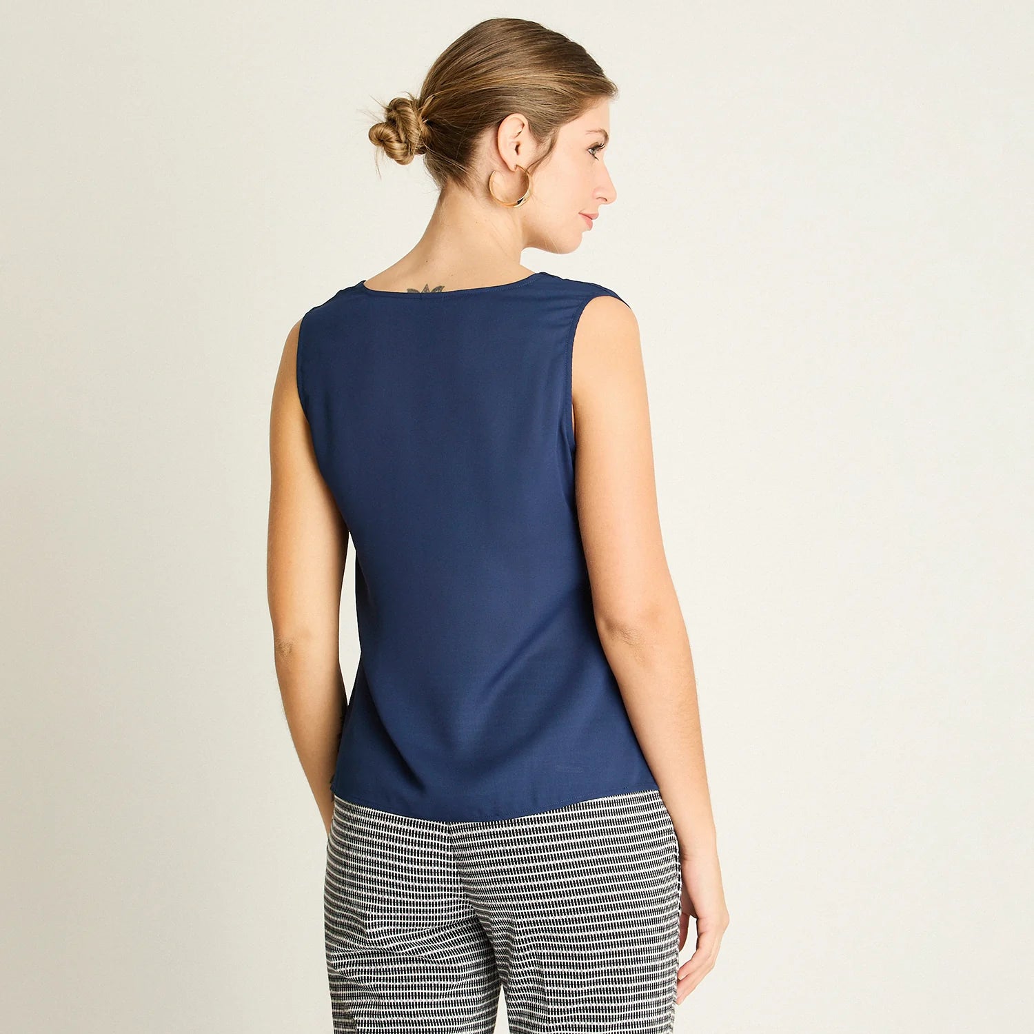 Este peto azul sin mangas de Lorenzo di Pontti ofrece un calce holgado que garantiza comodidad durante todo el día. Su escote en V y volante en el ruedo aportan un toque femenino y elegante, mientras que el tejido ligero 100% poliéster lo hace ideal para usar en cualquier estación. Su tono azul profundo combina con facilidad y aporta un estilo sofisticado y versátil para múltiples ocasiones.