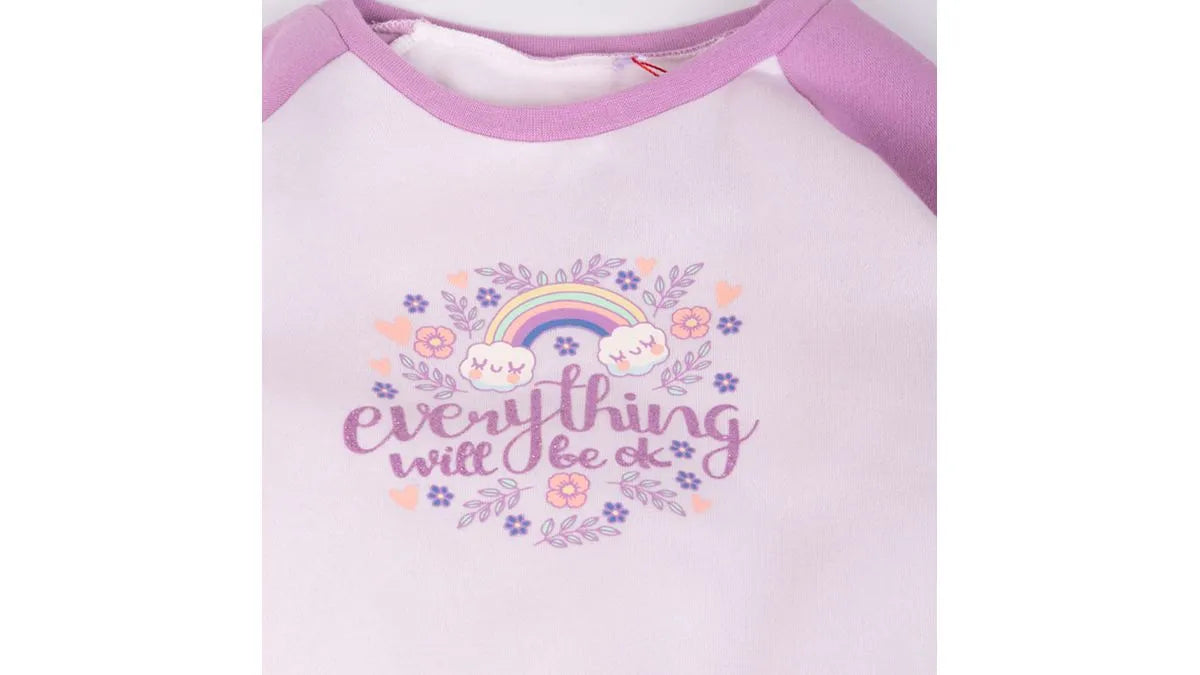 Este pijama para niña en tono malva combina comodidad y estilo para las noches de descanso. Su tejido suave y delicado cuida la piel, mientras que su diseño encantador aporta un toque dulce y femenino. Ideal para que las pequeñas disfruten de un sueño reparador con total libertad de movimiento.