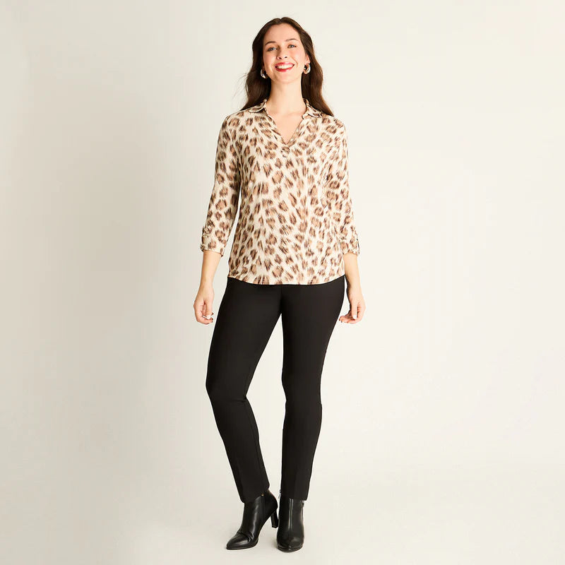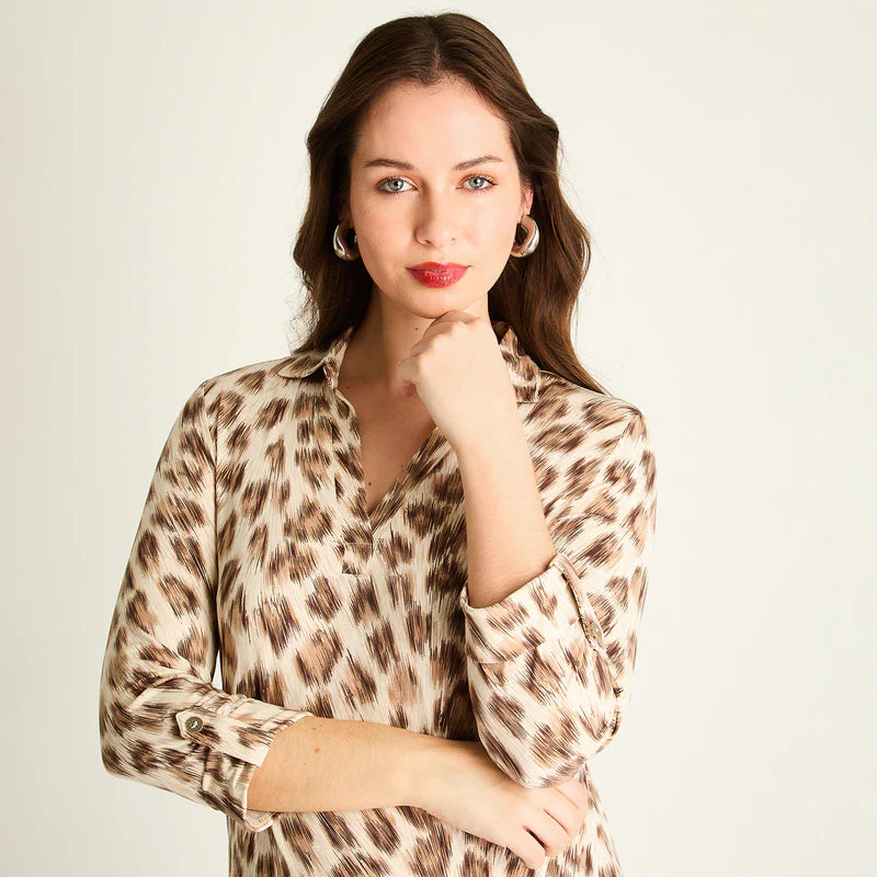 Descubre la Polera Animal Print Café de Lorenzo di Pontti, una prenda que fusiona estilo audaz y comodidad para la nueva temporada. Su estampado animal print en tonos café y crema aporta modernidad con elegancia. Confeccionada en tejido elástico (97% poliéster y 3% spandex), ofrece un calce normal y manga larga ideal para el uso diario. El cuello camisero y la abertura en V con detalle decorativo realzan su sofisticación femenina. Perfecta para quienes buscan un look con carácter sin sacrificar confort. Añade este básico imprescindible a tu guardarropa y marca tendencia.