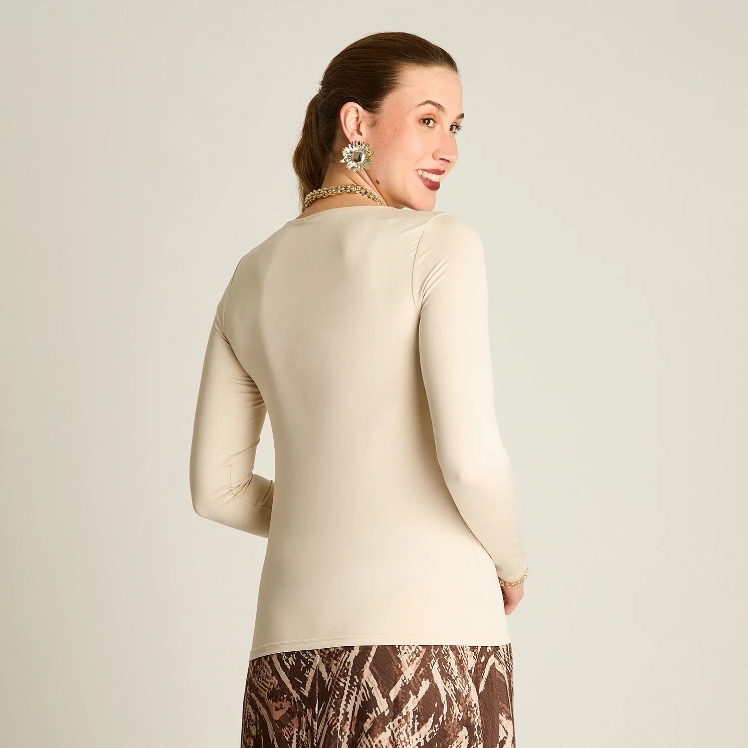 Polera Básica Mujer Manga Larga Escote Redondo Arena