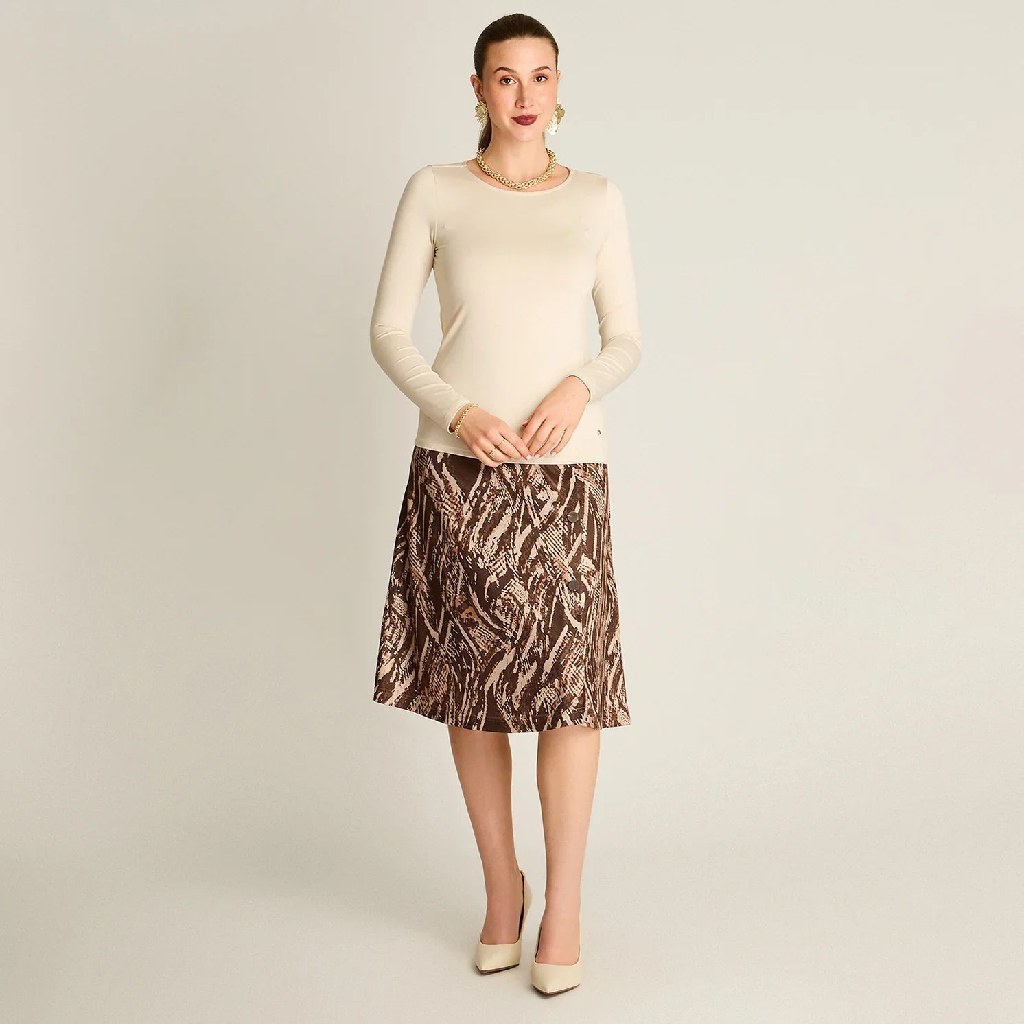 Esta polera de manga larga en tonalidad arena representa una inversión inteligente en prendas fundamentales del guardarropa. Confeccionada en punto suave con composición de 97% poliéster y 3% elastano, ofrece una sensación envolvente similar a una segunda piel, combinando ligereza con comodidad sostenida. Su elasticidad media proporciona libertad de movimiento y recuperación estructural, preservando la forma original tras múltiples lavados. El ajuste normal, levemente ceñido, respeta la silueta sin comprometer la movilidad, mientras que el escote redondo clásico garantiza versatilidad temporal. Funciona tanto como prenda independiente como base estratégica bajo capas, adaptándose a jeans, faldas, pantalones sastre o prendas de abrigo. Un básico funcional que trasciende tendencias, elevando cualquier composición con elegancia discreta. Modelo 10001021 de la colección Toda Temporada, marca Lorenzo di Pontti.