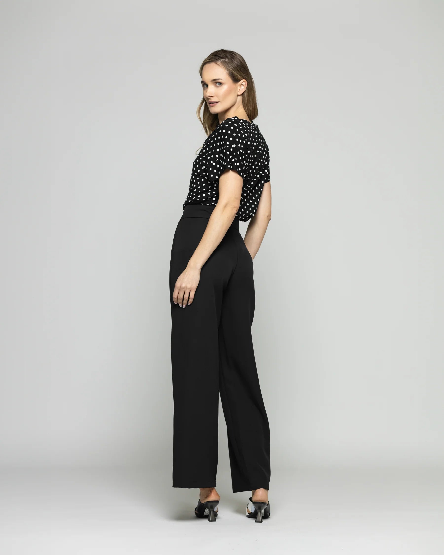 Esta blusa Monarda combina un diseño clásico con un toque moderno gracias a su patrón de lunares blancos sobre fondo negro. Su escote en V y corte relajado ofrecen una silueta favorecedora y cómoda, perfecta para el día a día. Las mangas cortas y la caída ligera del tejido de viscosa brindan frescura y facilidad de movimiento. Ideal para usar en la oficina o en ocasiones casuales, esta prenda versátil se adapta perfectamente tanto dentro como fuera de pantalones, faldas o jeans, aportando un estilo elegante sin esfuerzo.