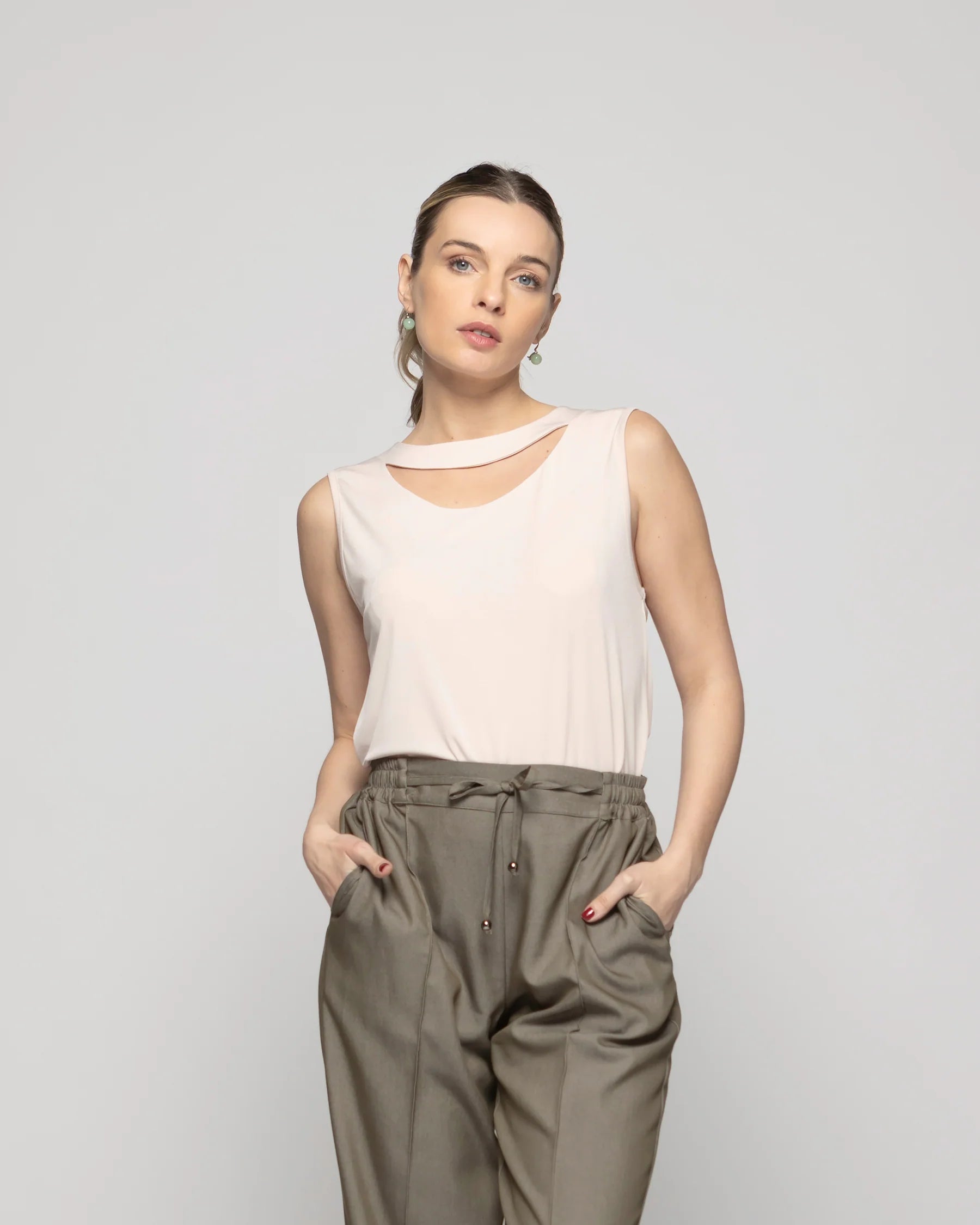 Polera Mujer Narciso Escote Medialuna Sin Mangas Nude Ludovica