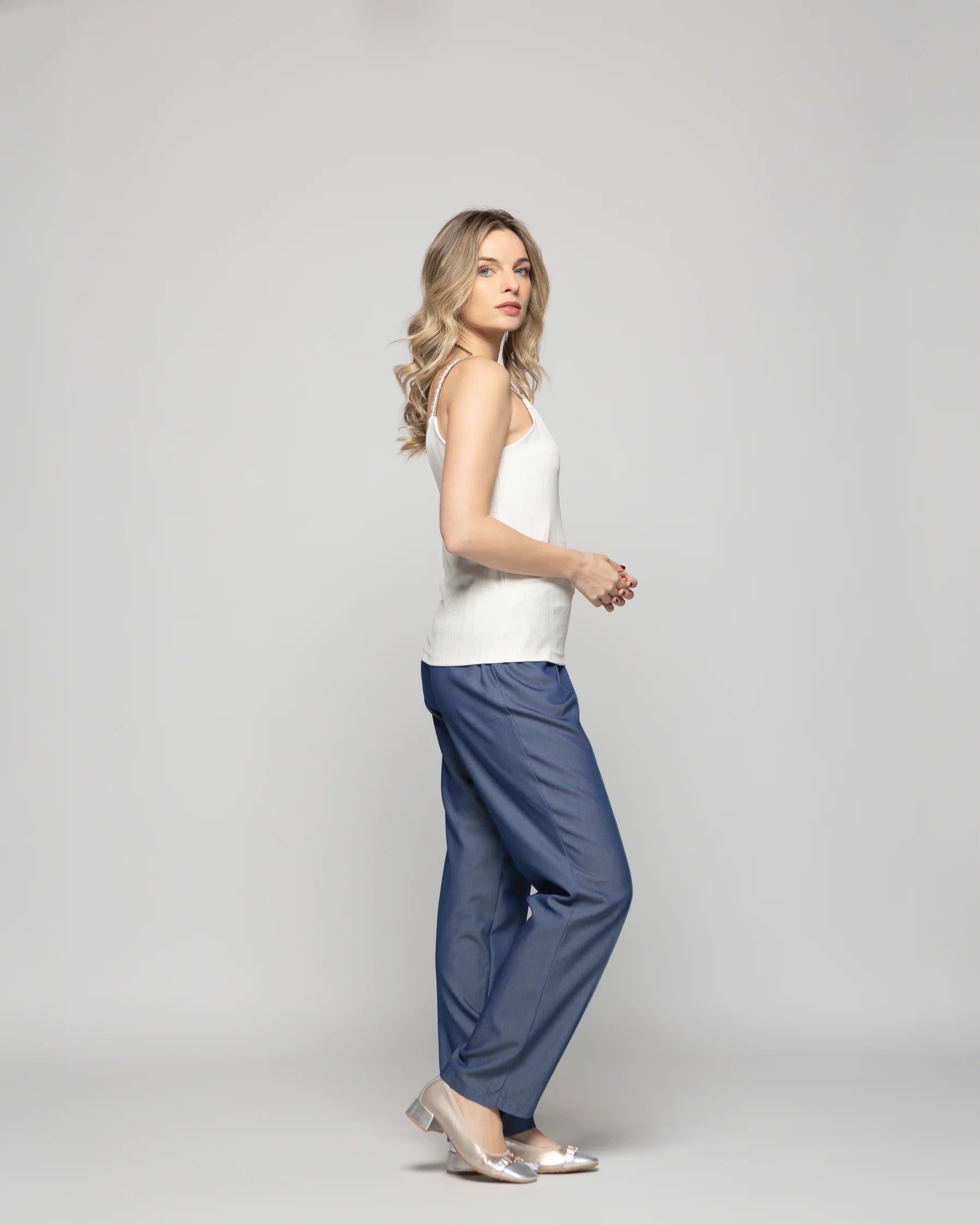 Esta polera de tirantes finos en tono blanco crudo ofrece un diseño delicado y femenino que se adapta suavemente al cuerpo gracias a su caída natural. Su escote en V aporta un toque sutil de sensualidad, mientras que los tirantes dobles con piedras añaden un detalle elegante y distintivo sin sacrificar comodidad. Versátil y ligera, es perfecta para combinar con pantalones de lino en días casuales o con faldas estructuradas en ocasiones especiales, convirtiéndose en una prenda esencial para quienes buscan estilo y frescura en todo momento.