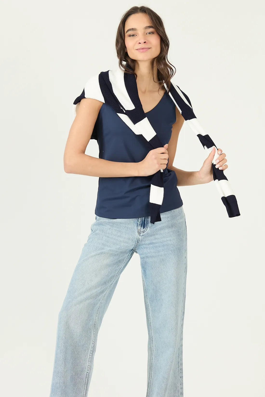 Polera Mujer Sin Mangas Escote En V Azul Marino