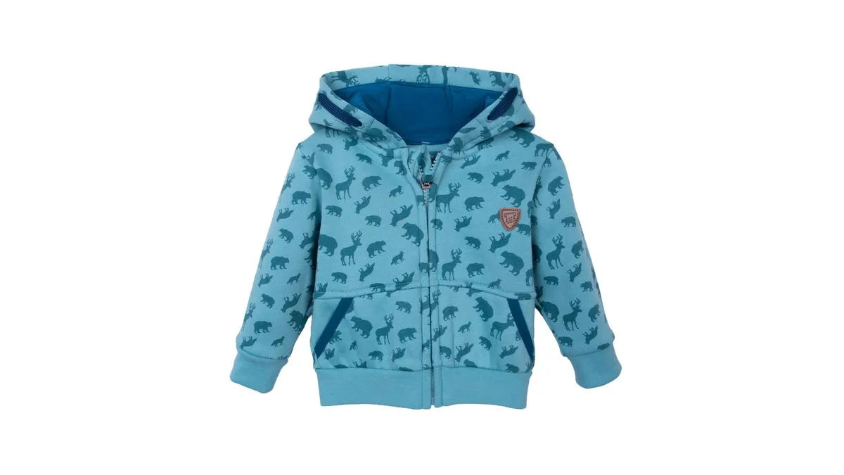 Polerón cómodo y cálido para bebé niño, confeccionado en tela suave y resistente. Diseño con cierre frontal que facilita el cambio y el vestir diario. Estampado colorido con motivos de animales que encanta a los pequeños. Color celeste delicado, perfecto para cualquier ocasión. Ideal para mantener abrigado a tu bebé en días frescos. Prenda versátil que combina con diferentes prendas del guardarropa infantil.
