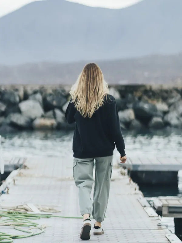 Combínalo con jeans, calzas o shorts para un look relajado y moderno. Perfecto para días frescos o tardes de relajo.