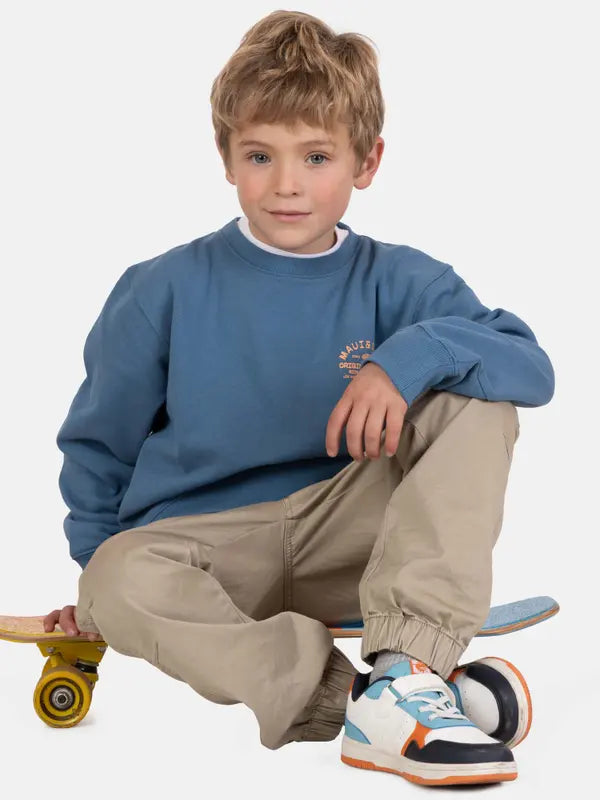 Este polerón de cuello redondo es un básico esencial para el guardarropa de cualquier niño. Confeccionado en una suave mezcla de 80% algodón y 20% poliéster, proporciona un abrigo ligero y una textura agradable al tacto, además de ser resistente al uso diario. Su diseño clásico incluye cuello redondo reforzado, puños y dobladillo acanalados que garantizan un ajuste cómodo y seguro. Perfecto para el colegio o juegos al aire libre, ofrece comodidad y practicidad para cada día.