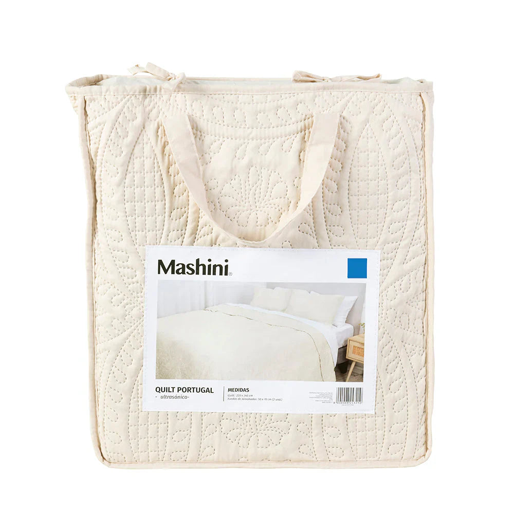 Disfruta del confort y estilo con el Quilt 1.5 Plazas Portugal en color arena. Confeccionado en poliéster, ofrece una sensación suave y duradera, ideal para darle un toque acogedor a tu dormitorio. Este set incluye un quilt de 180x240 cm y una funda de almohada de 50x70 cm con fuelle de 15 cm, asegurando una cobertura completa y un fácil ajuste. Perfecto para quienes buscan calidad y diseño sencillo que armoniza con cualquier decoración. Dale calidez y elegancia a tus noches con esta pieza esencial.
