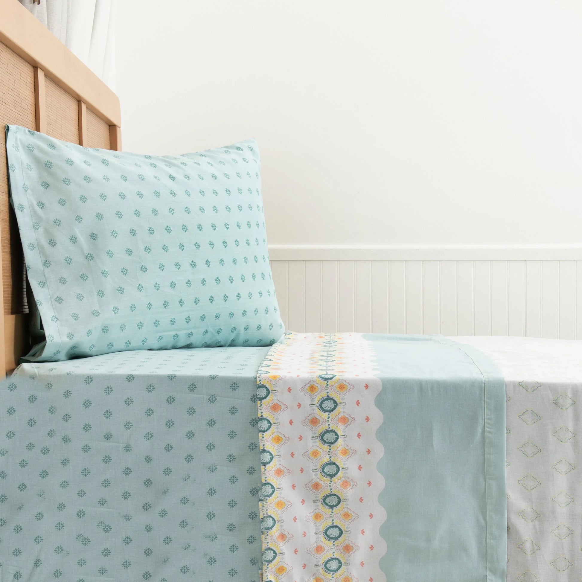 - Incluye: 1 Sábana Encimera, 1 Sábana Bajera, 1 Funda de Almohada