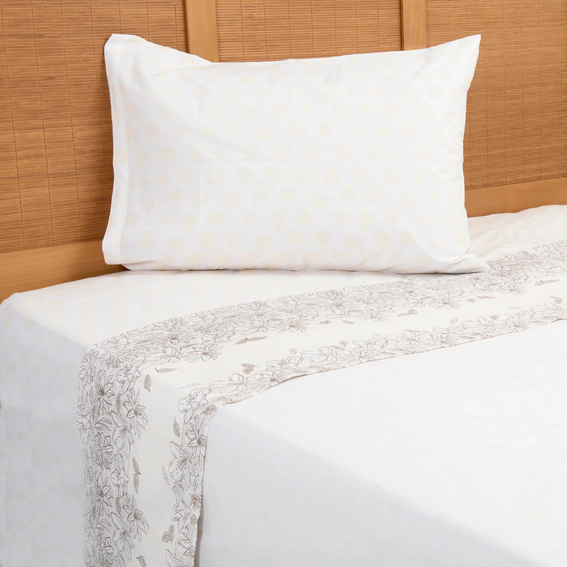 Sábana 1.5 Plazas 180 Hilos Estampado Flora