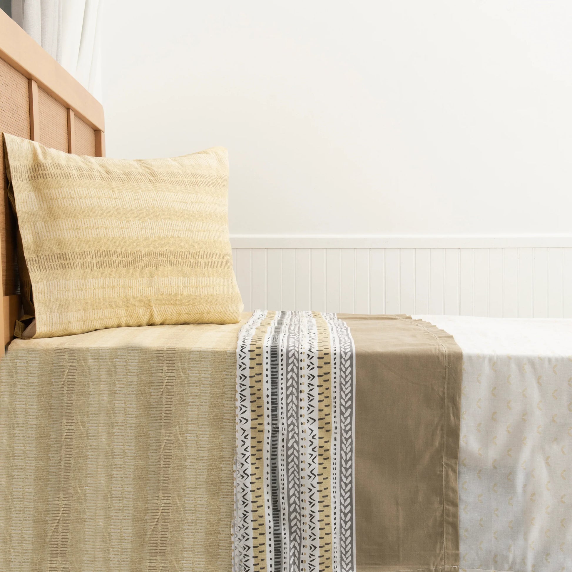 - Incluye: 1 Sábana Encimera, 1 Sábana Bajera, 1 Funda de Almohada