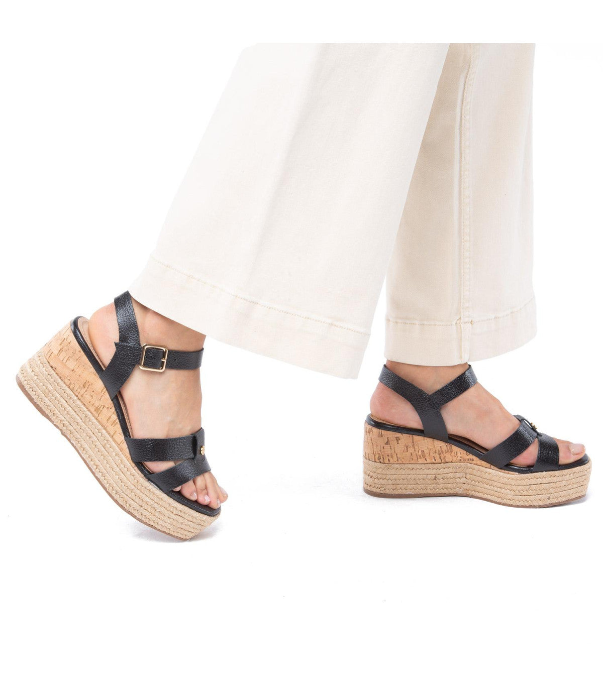 Eduarda transforma tu estilo sin perder el toque esencial para sobresalir con armonía. Su plataforma elevada y diseño de tres materiales brindan altura y firmeza. Un imprescindible con actitud que realza tu figura y define tu carácter.