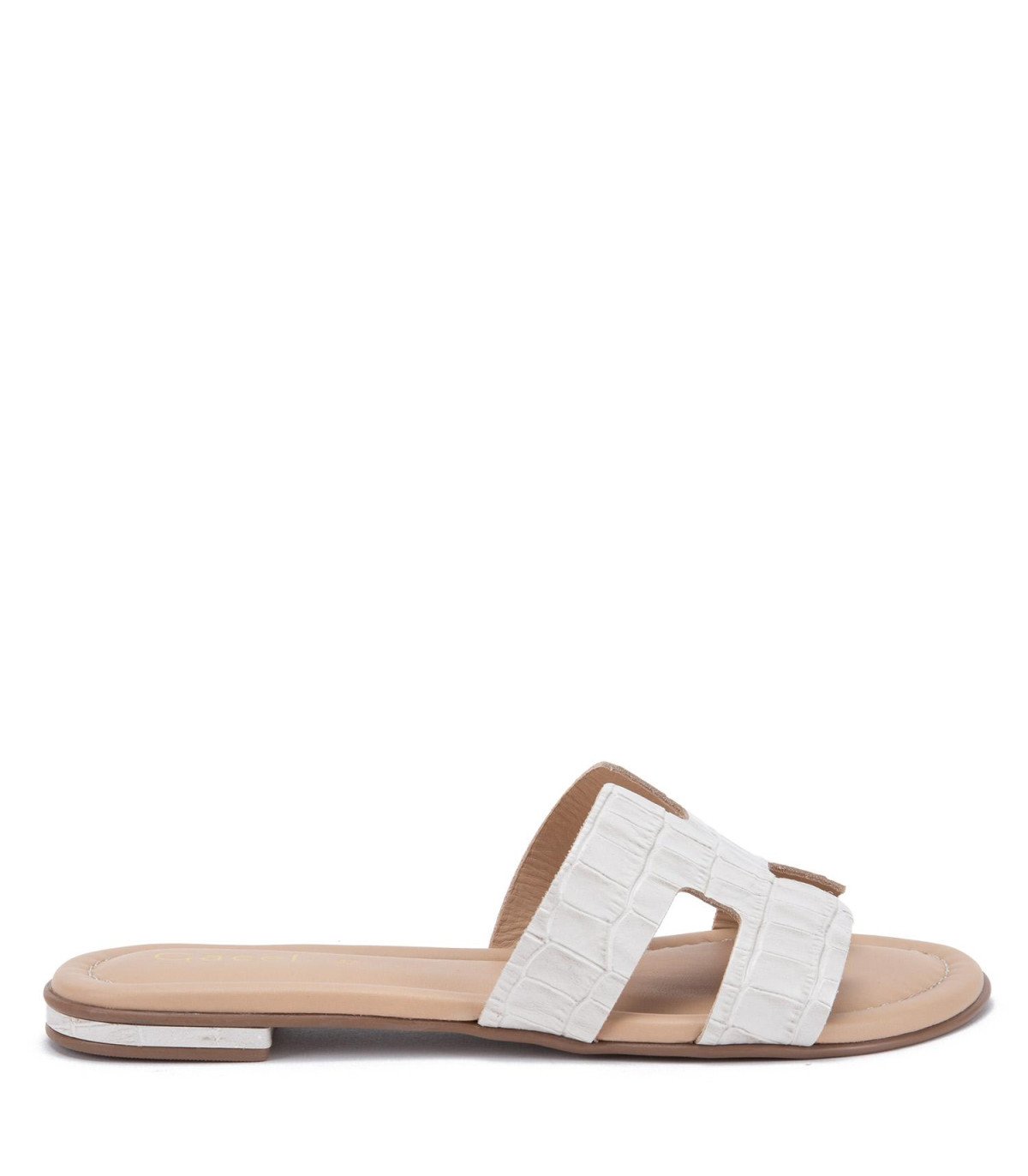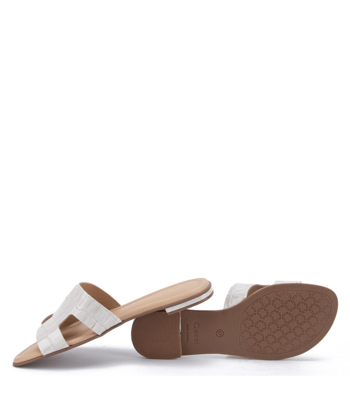 Sandy representa la fusión perfecta entre simplicidad y textura. Esta sandalia plana, confeccionada en cuero croco blanco con un diseño entrelazado, realza cualquier estilo con facilidad. Su ligereza y flexibilidad la hacen ideal para usarla durante todo el día. Cambia tu outfit, pero mantén siempre tu auténtico estilo.
