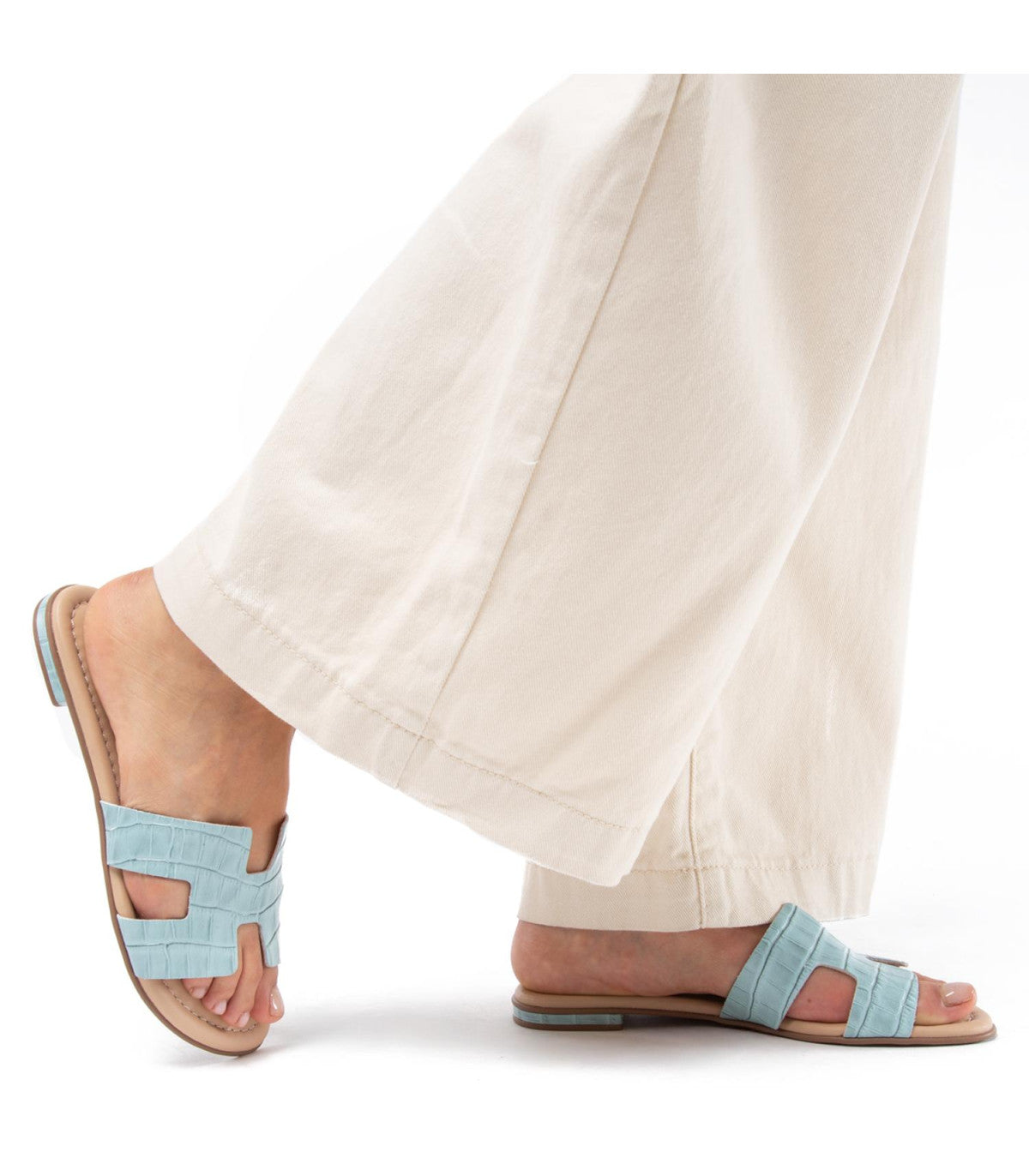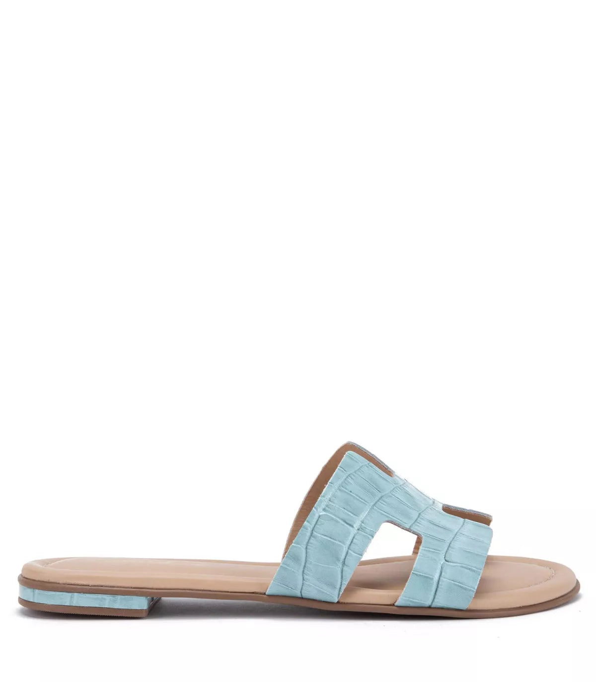 Las piezas básicas no necesitan destacar. La sandalia Sandy en cuero croco celeste lo demuestra: práctica, clásica y tan confortable que no querrás quitártela. Su diseño plano ajusta el pie con seguridad y elegancia. Cambia todo, menos tu esencia.