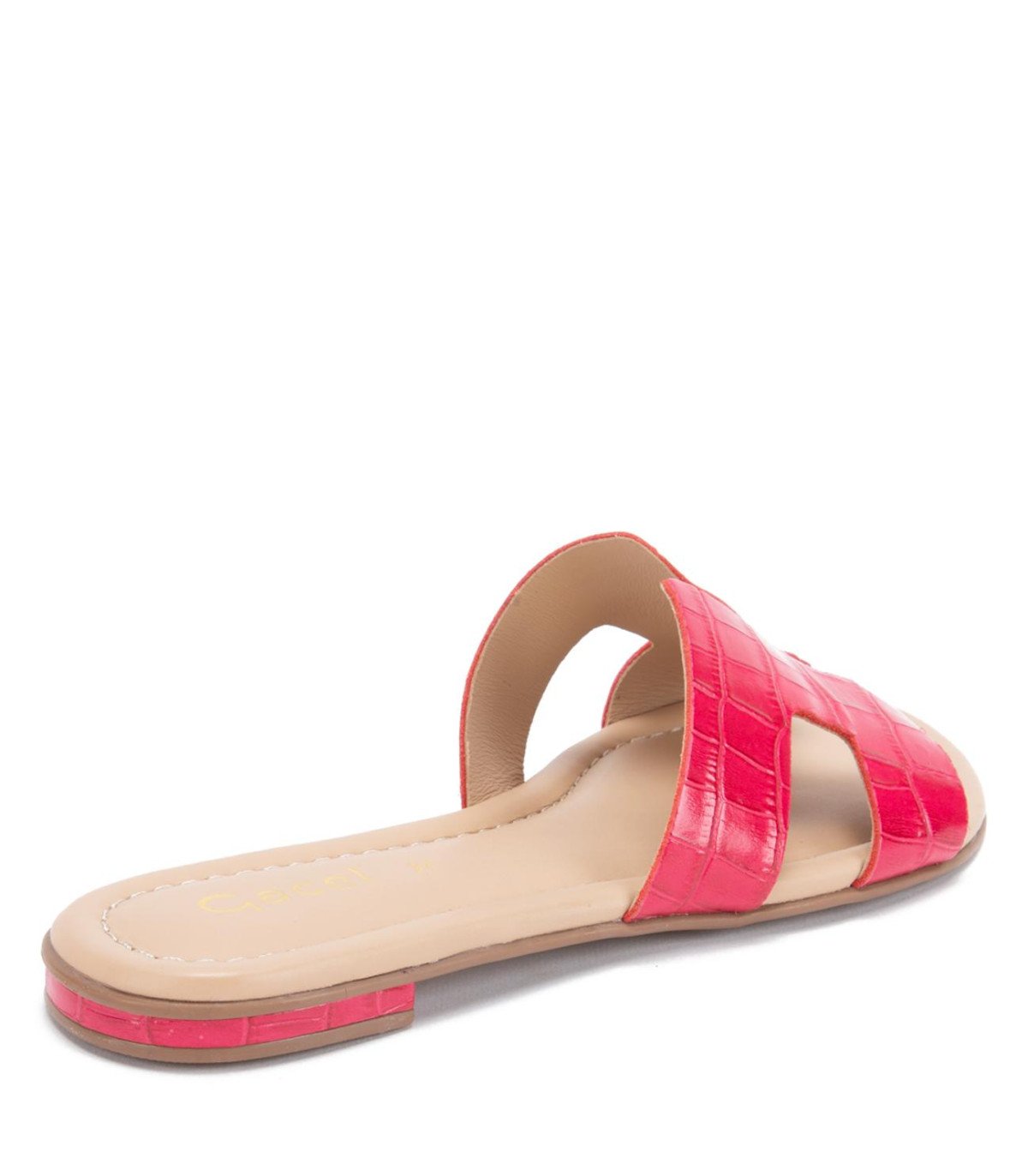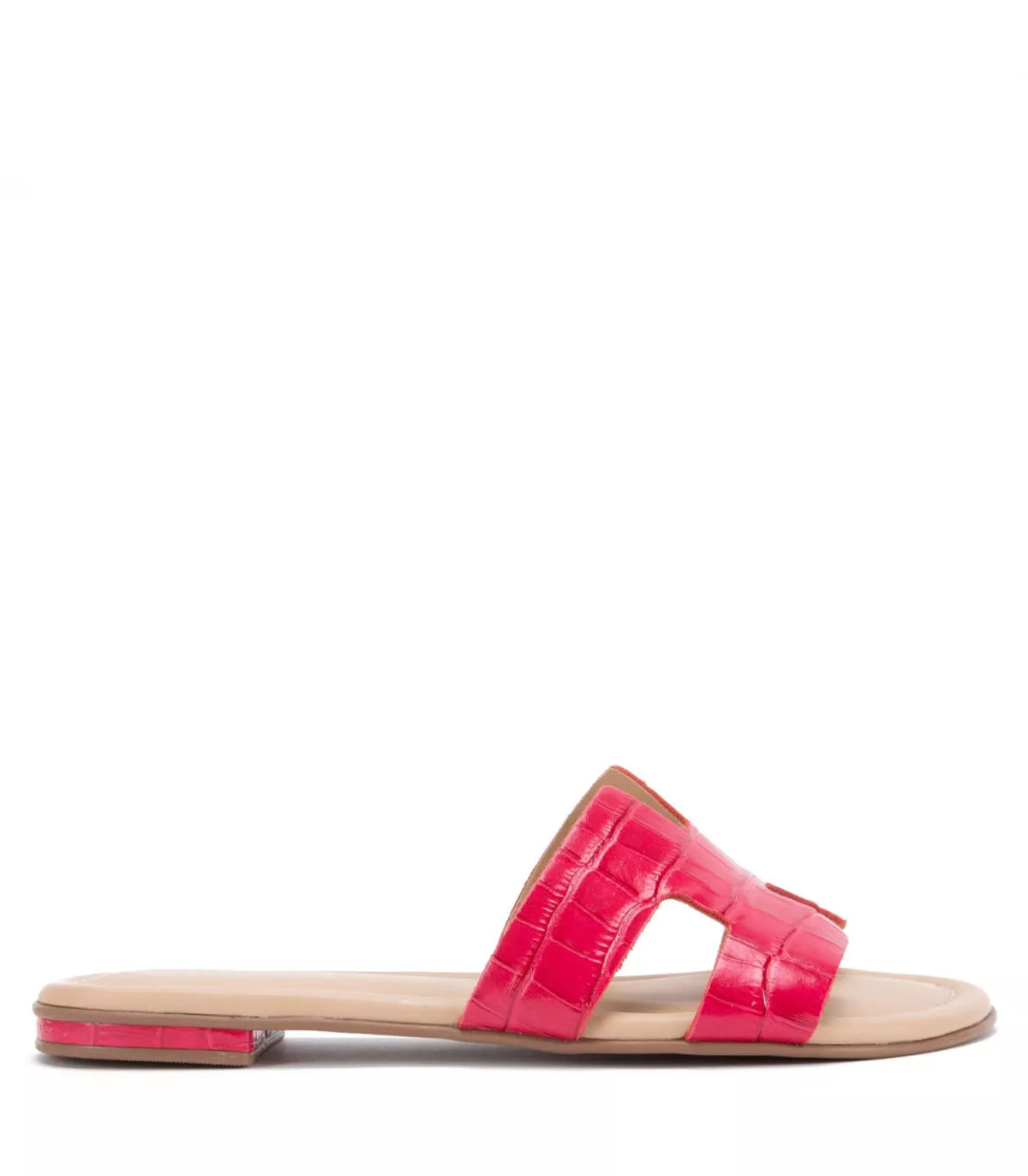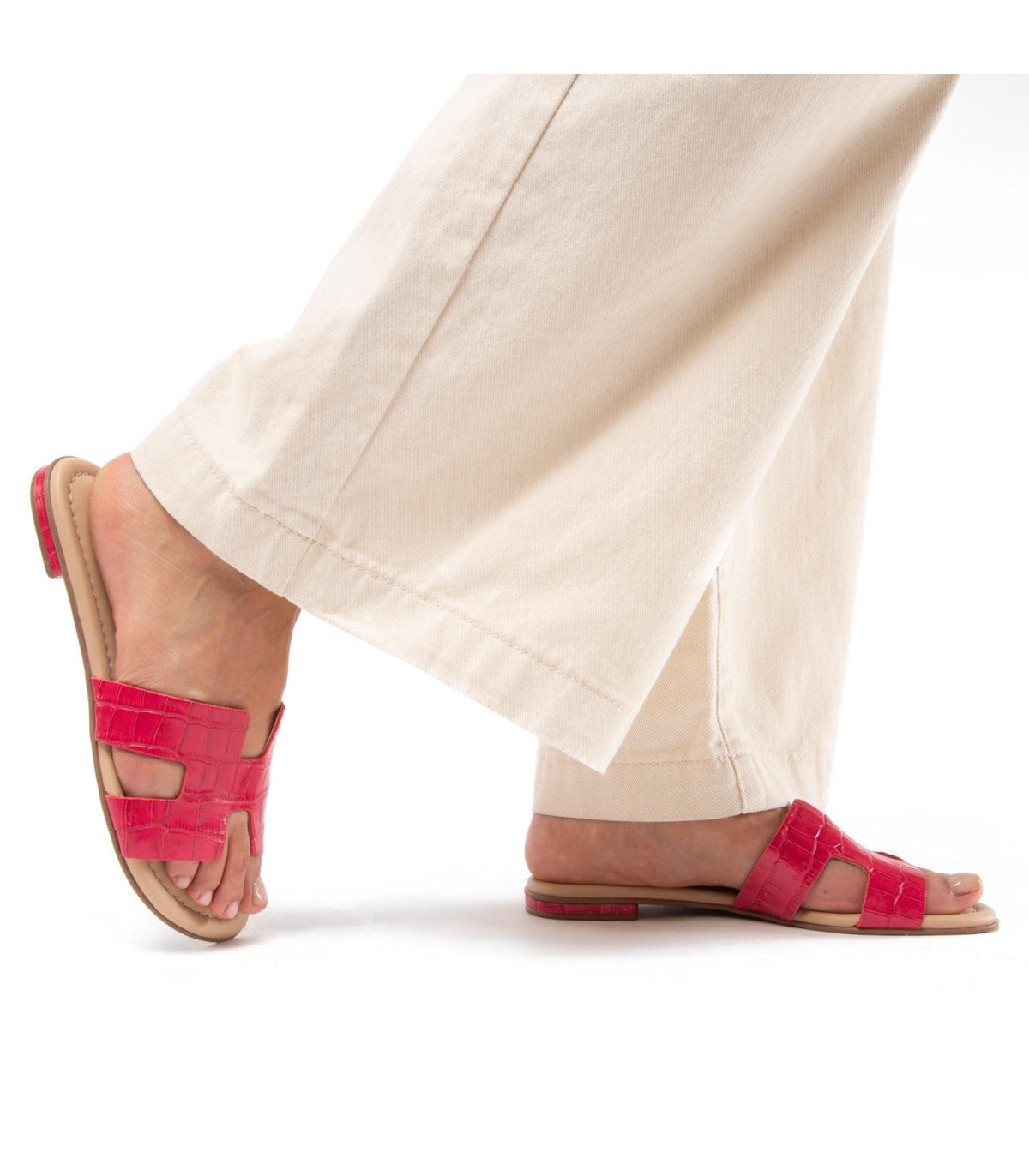 El vibrante tono frambuesa transforma lo esencial sin perder su esencia. La sandalia Sandy, en cuero croco, rediseña lo clásico con estilo y carácter. Ligera, cómoda y adaptable, se convierte en esa pieza imprescindible que realza tu rutina diaria con facilidad. Cambia todo, mantén tu raíz.