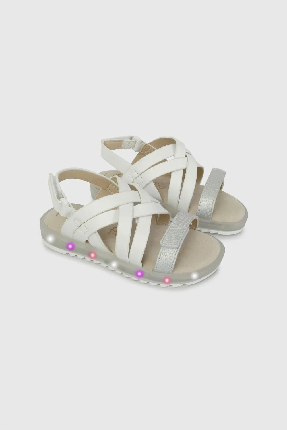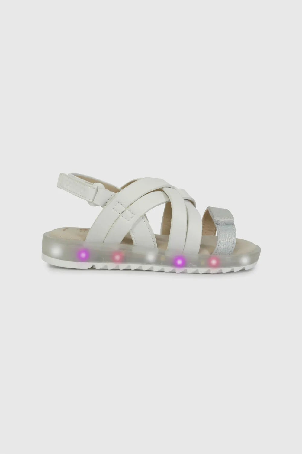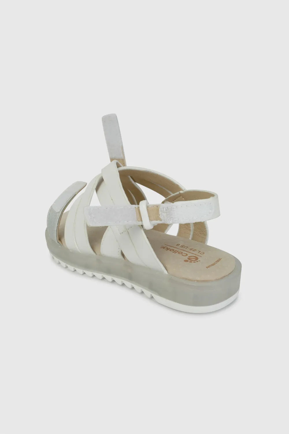 Las Sandalias de Luces Blancas Colloky fusionan diversión y funcionalidad para niñas en desarrollo. Equipadas con luces y ruedas integradas, promueven el juego dinámico mientras garantizan protección del pie. Fabricadas con capellada sintética de primera calidad, forro transpirable y plantilla de cuero auténtico, ofrecen soporte estructural y comodidad sostenida. El sistema de hebilla ajustable proporciona sujeción segura sin limitar la movilidad, mientras que su caña baja permite libertad de movimiento natural. La suela de TR asegura agarre confiable y resistencia en múltiples superficies, posicionándolas como una alternativa duradera para el uso cotidiano.
