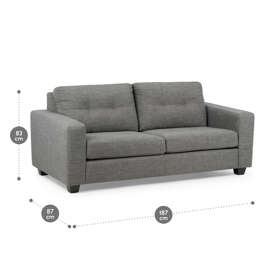 Disfruta de la comodidad y estilo moderno de nuestro Sofá Mira Tela 3 cuerpos Gris. Su diseño elegante y suave tela gris brindan una sensación de lujo a tu hogar. Cuenta con tres cómodos asientos que ofrecen espacio suficiente para que tú y tus invitados se relajen y disfruten juntos. ¡Haz de tu sala un lugar acogedor con nuestro sofá!