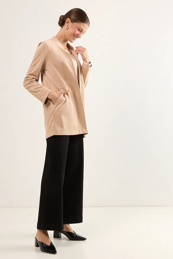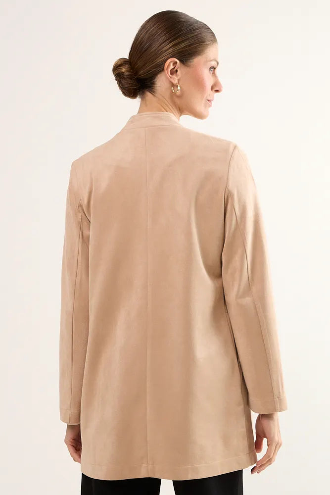 Este tapado de mujer en suave suede beige combina elegancia y comodidad para cualquier ocasión. Su diseño liso y clásico realza tu estilo mientras te protege del frío con un tacto agradable. Perfecto para lucir sofisticada y sentirte cómoda durante todo el día.