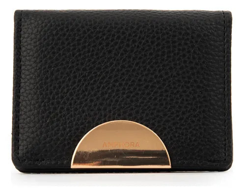 El tarjetero Naty en color negro combina estilo y funcionalidad, ideal para quienes valoran la organización sencilla. Fabricado en ecocuero graneado con detalles en dorado claro, su tamaño compacto de 10 cm de alto por 12 cm de ancho incluye un broche seguro que mantiene tus tarjetas protegidas y al alcance. Un accesorio práctico y elegante que no puede faltar en tu día a día.