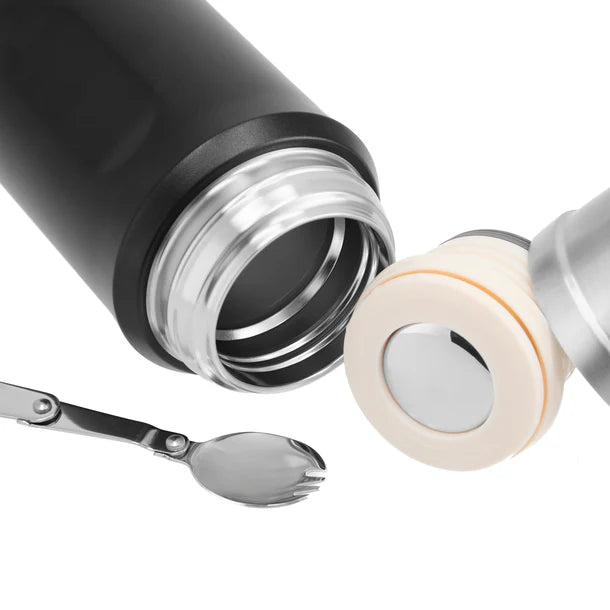 Conserva tus comidas en la temperatura perfecta con este termo de 600 ml diseñado para quienes están siempre en movimiento. Su construcción de acero inoxidable con doble aislamiento mantiene los alimentos calientes o fríos durante horas, mientras que la tapa de apertura generosa facilita el acceso sin complicaciones. Viene equipado con cuchara plegable integrada y funda de neopreno protectora, convirtiéndolo en tu compañero ideal para el trabajo, viajes o aventuras al aire libre. Durabilidad, practicidad y comodidad en un solo producto.
