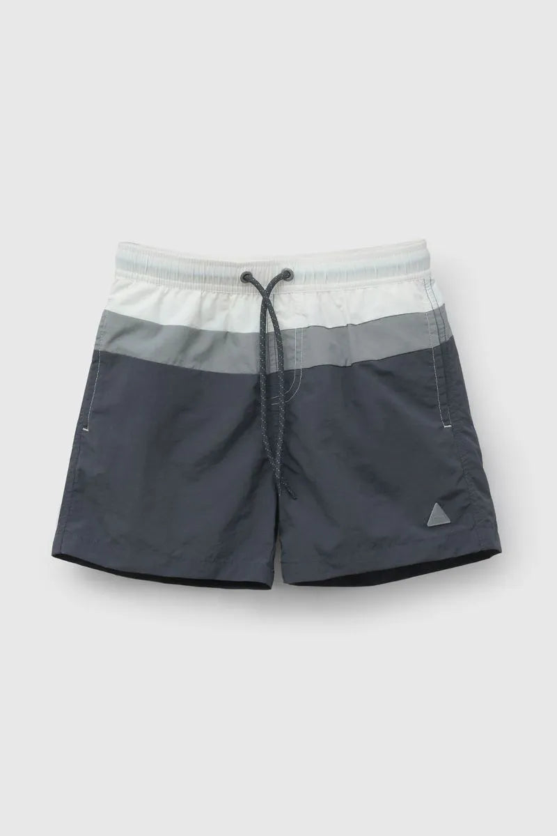 Traje de baño infantil confeccionado en 100% nylon de alta durabilidad, diseñado para niños de 3 a 12 años. Presenta un elegante patrón de rayas en negro que combina estilo contemporáneo con funcionalidad. La cintura elasticada asegura un ajuste seguro y cómodo, permitiendo libertad de movimiento durante actividades acuáticas. Incorpora protección UV que resguarda la piel delicada de los menores contra la radiación solar, proporcionando tranquilidad a los padres. Ideal para playa, piscina o cualquier actividad al aire libre durante la temporada estival.
