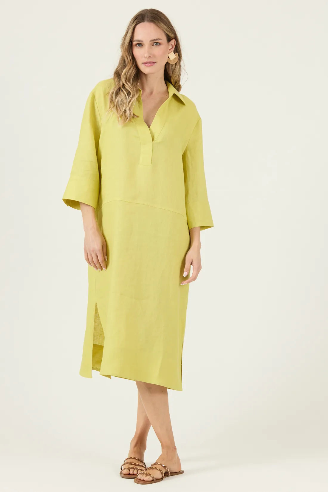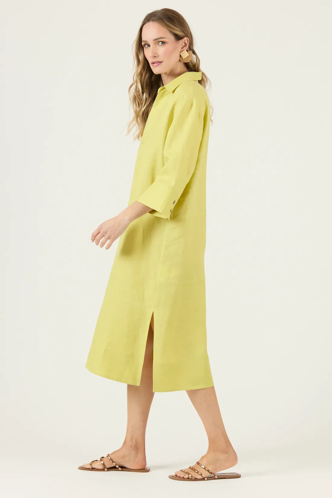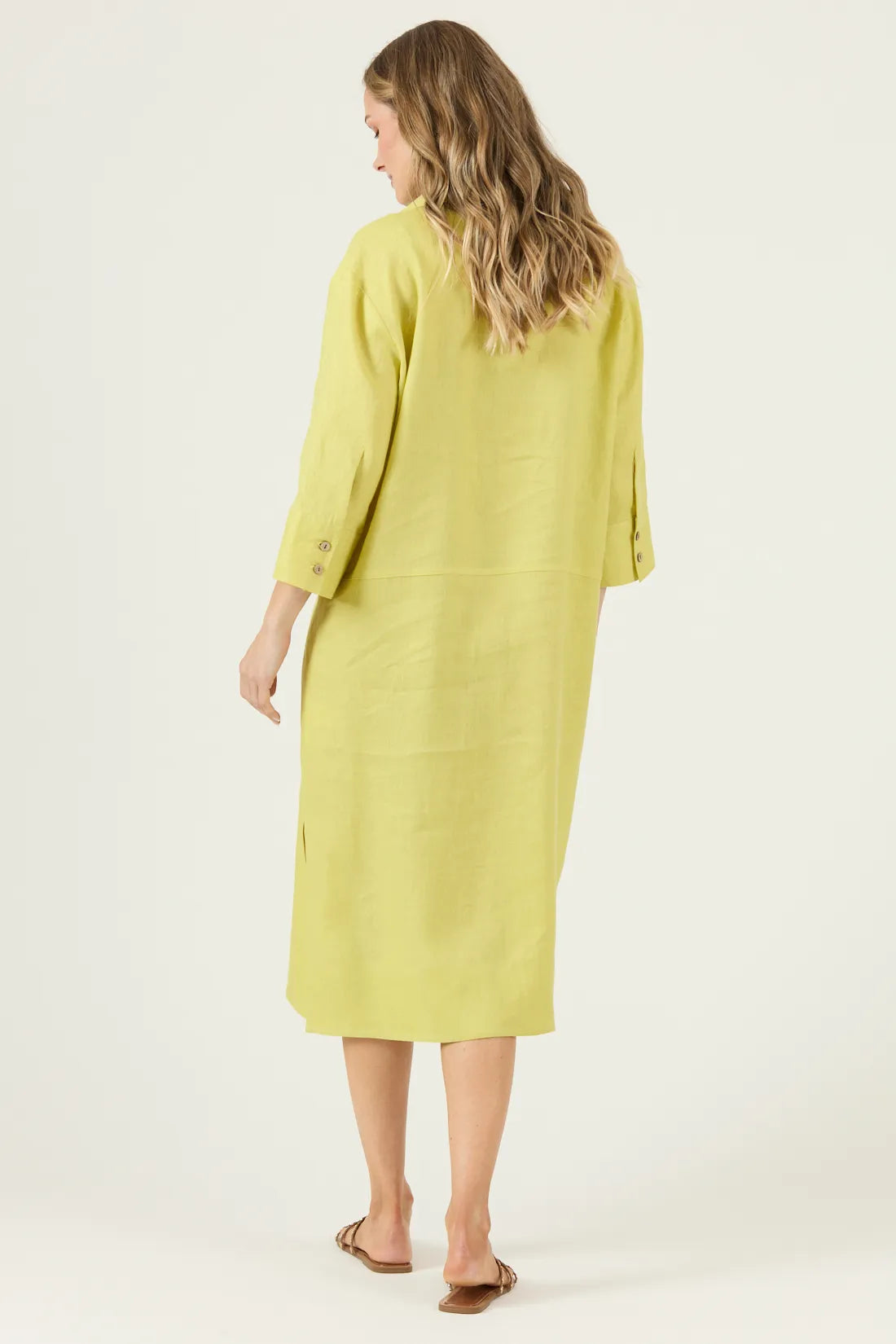 Este vestido de lino 100% combina elegancia y comodidad con su diseño liso, mangas 3/4 y largo midi, perfecto para un look casual y sofisticado. Su corte regular y cuello camisero ofrecen un ajuste favorecedor, ideal para cualquier ocasión. Fácil de cuidar, se recomienda lavado a mano con agua fría y planchado cuidadoso para mantener su frescura y duración. Añade un toque natural y chic a tu guardarropa con esta prenda versátil y atemporal.